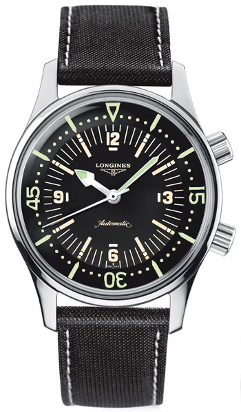 The Longines Legend Diver is a reissue of a 1960 diving watch by Longines. While maintain the overall spirit & design of the original watch, Longines has updated the watch with modern upgrades such as a sapphire crystal, screw in crowns & a screw in case back allowing for an impressive 300 water resistance rating.