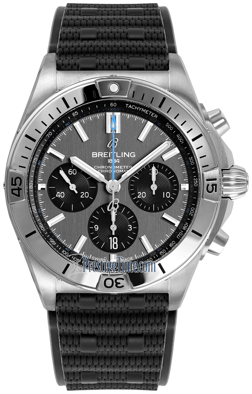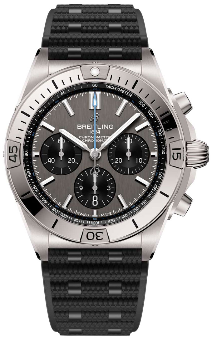• Breitling caliber B 01, beats at 28'800 vph, contains 47 jewels & has an approximate power reserve of 70 hours.