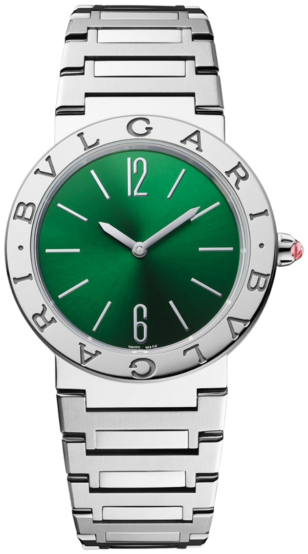 • Polished steel bezel engraved with the iconic BVLGARI•BVLGARI logo.