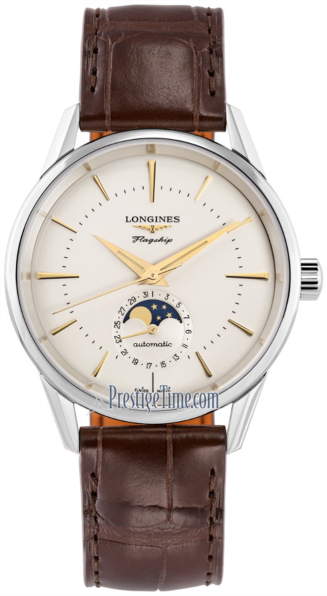 Mens Longines L4.815.4.78.2 Flagship Heritage Moonphase 38.5mm Watch