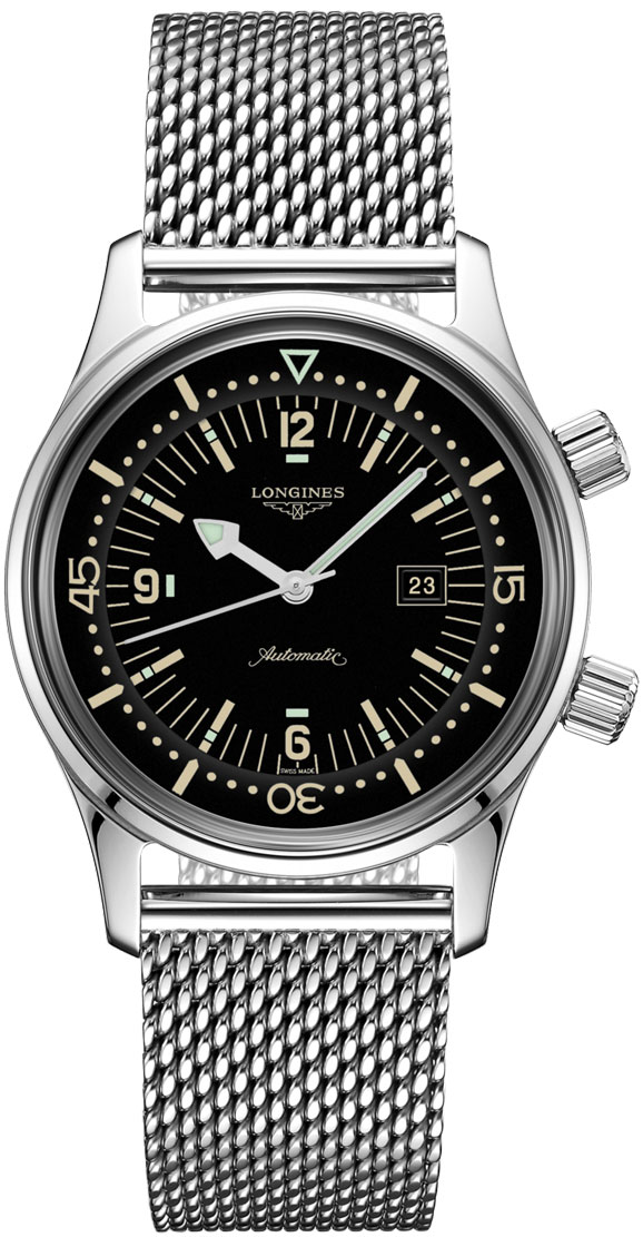 The Longines Legend Diver is a reissue of a 1960 diving watch by Longines. While maintain the overall spirit & design of the original watch, Longines has updated the watch with modern upgrades such as a sapphire crystal, screw in crowns & a screw in case back allowing for an impressive 300 water resistance rating.