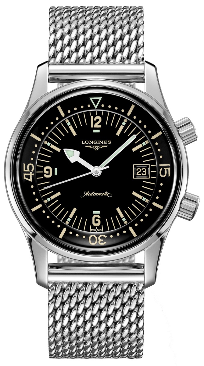 The Longines Legend Diver is a reissue of a 1960 diving watch by Longines. While maintain the overall spirit & design of the original watch, Longines has updated the watch with modern upgrades such as a sapphire crystal, screw in crowns & a screw in case back allowing for an impressive 300 water resistance rating.