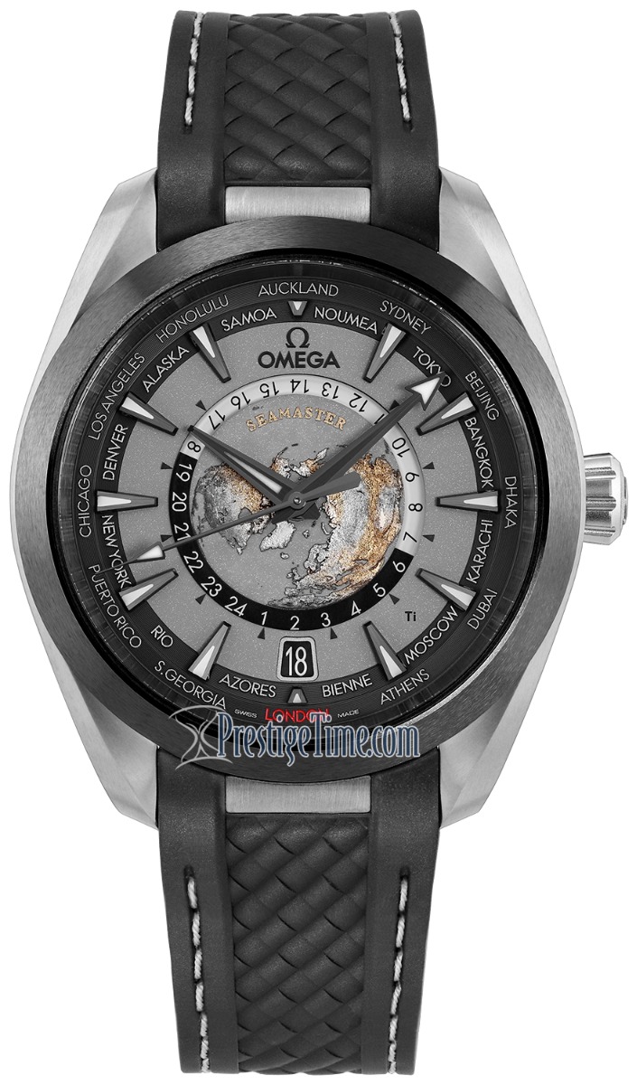 Mens Omega 220.92.43.22.99.001 Aqua Terra 150M GMT Worldtimer Co-Axial 43mm Watch