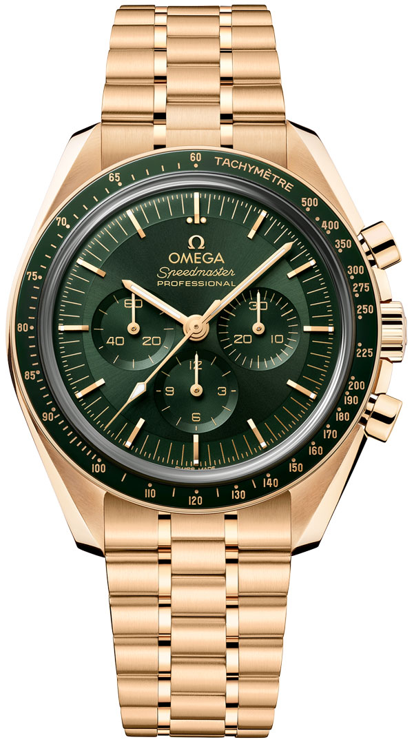• Sun brushed green PVD dial with double stepped dial (step-up dial perimeter & stepped down green sub-dials)