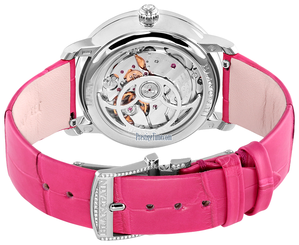 Calibre: Blancpain calibre 1163L, beats at 3Hz/21600 vph, 30 jewels, power reserve of 100 hours (4 days)