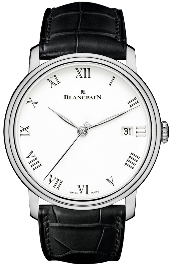 • Polished white gold central seconds hand with the Blancpain logo at the end.