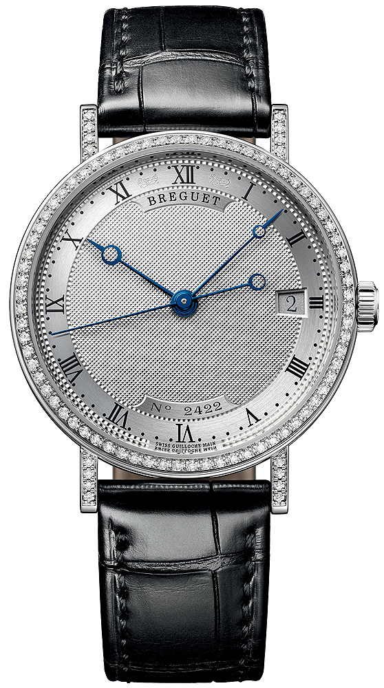 • Polished finished 18kt white gold case with Breguet's signature coined edged.