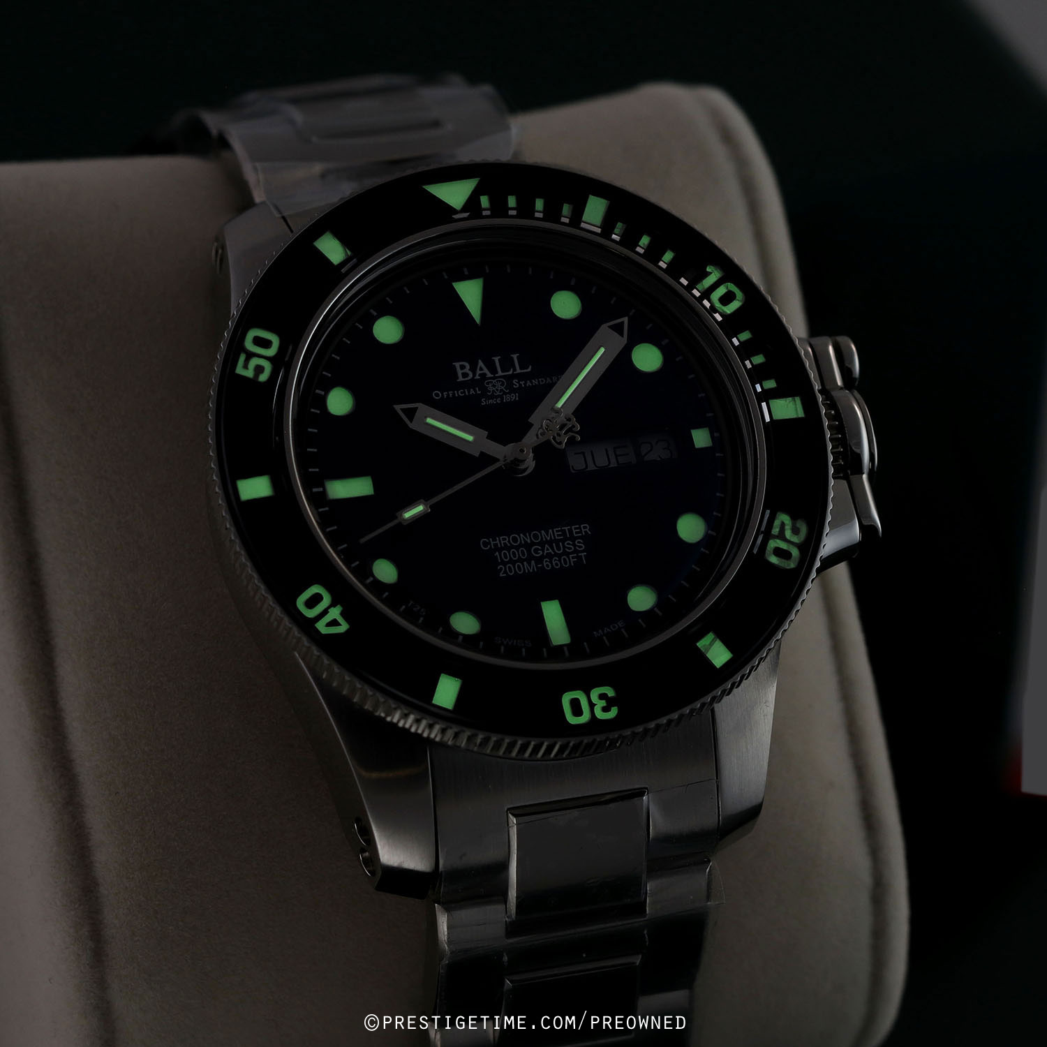 Movement: Powered by a Ball Watch caliber RR1102-CSL (base ETA 2836-2), COSC Certified Chronometer, patented SpringLOCK® hairspring & SpringSEAL® regulator anti-shock systems, beats at 28,800 vph (4Hz), and has a power reserve of +/- 38 hours.