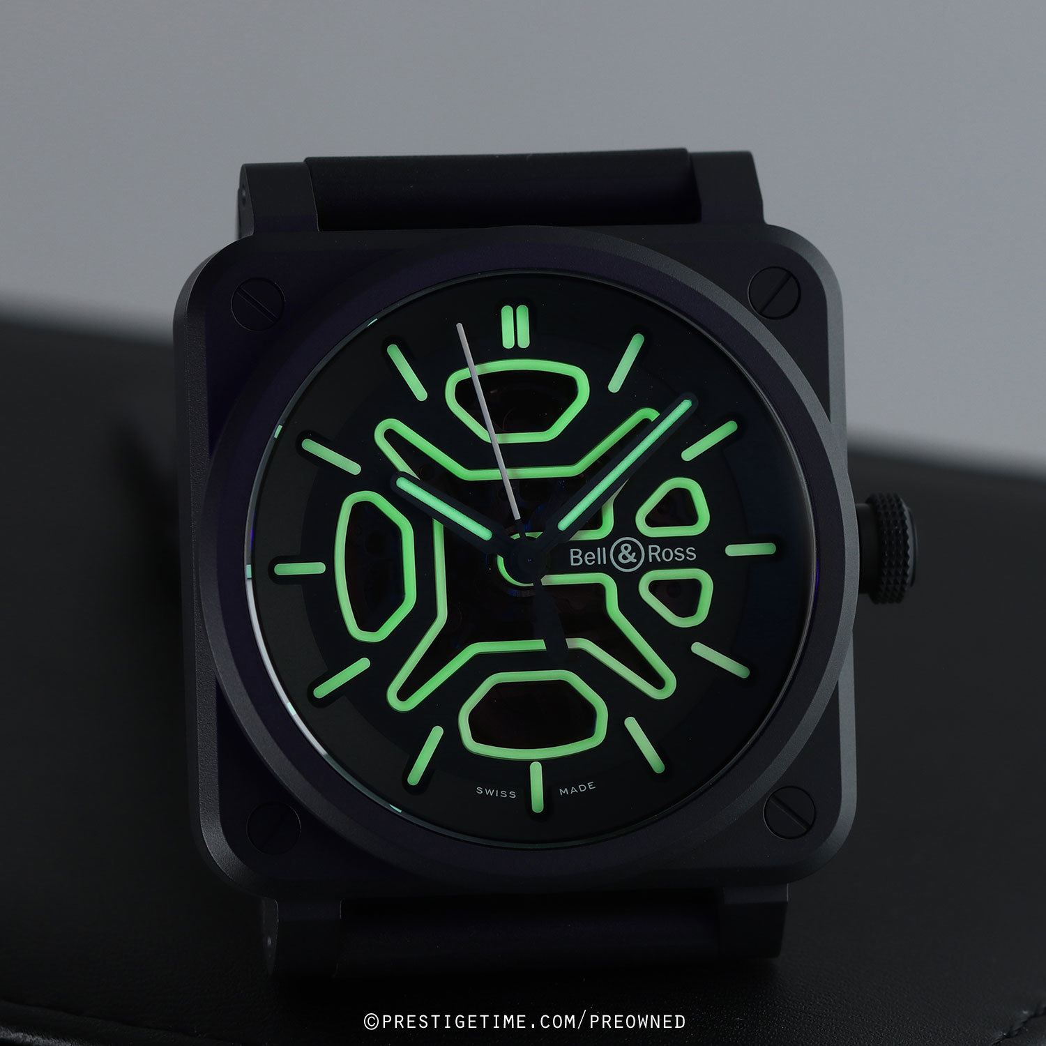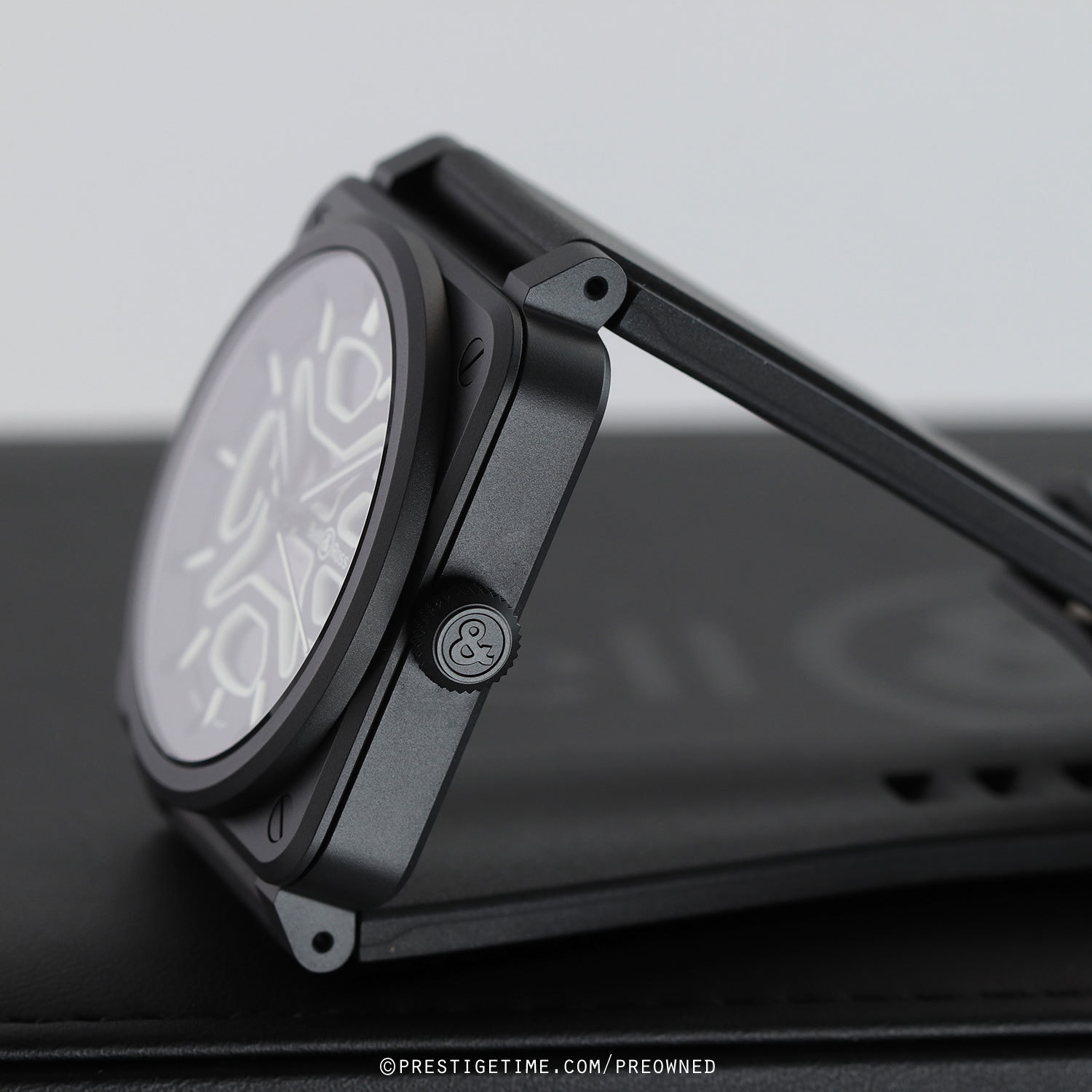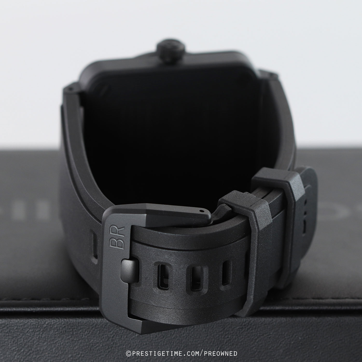 - Fitted on its original Bell & Ross black rubber strap with a stainless steel tang buckle. This strap is unworn in new condition with its full wear lifespan remaining.
