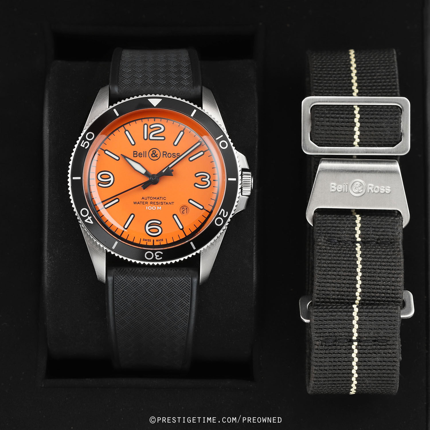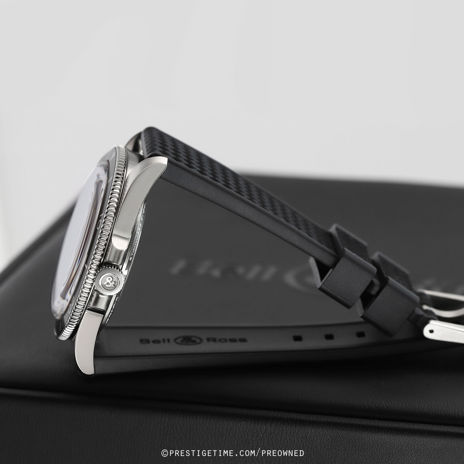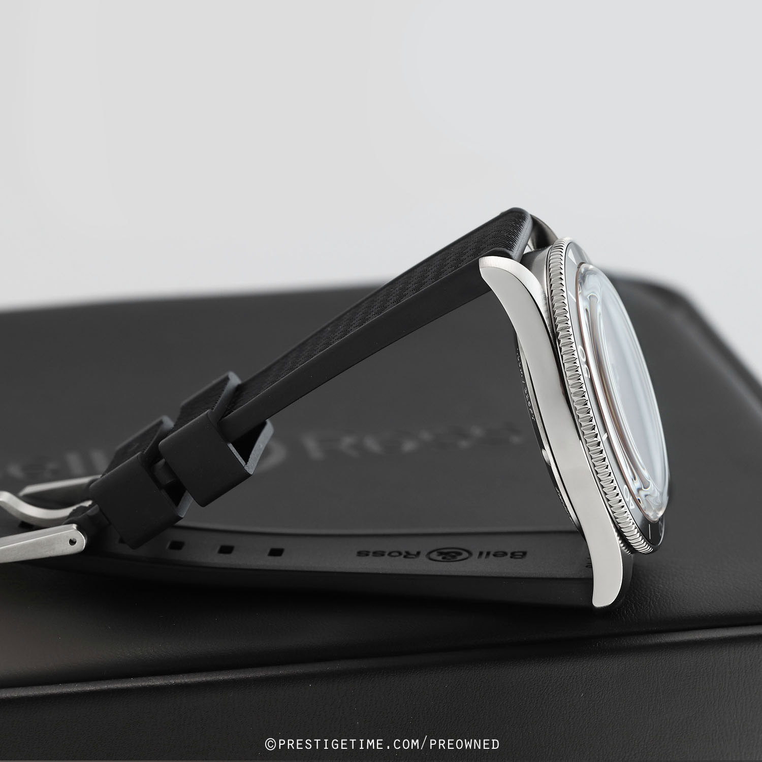 - Fitted on its original Bell & Ross black rubber strap with a stainless steel tang clasp. The strap is in excellent new new condition with the vast majority of its wear lifespan remaining.