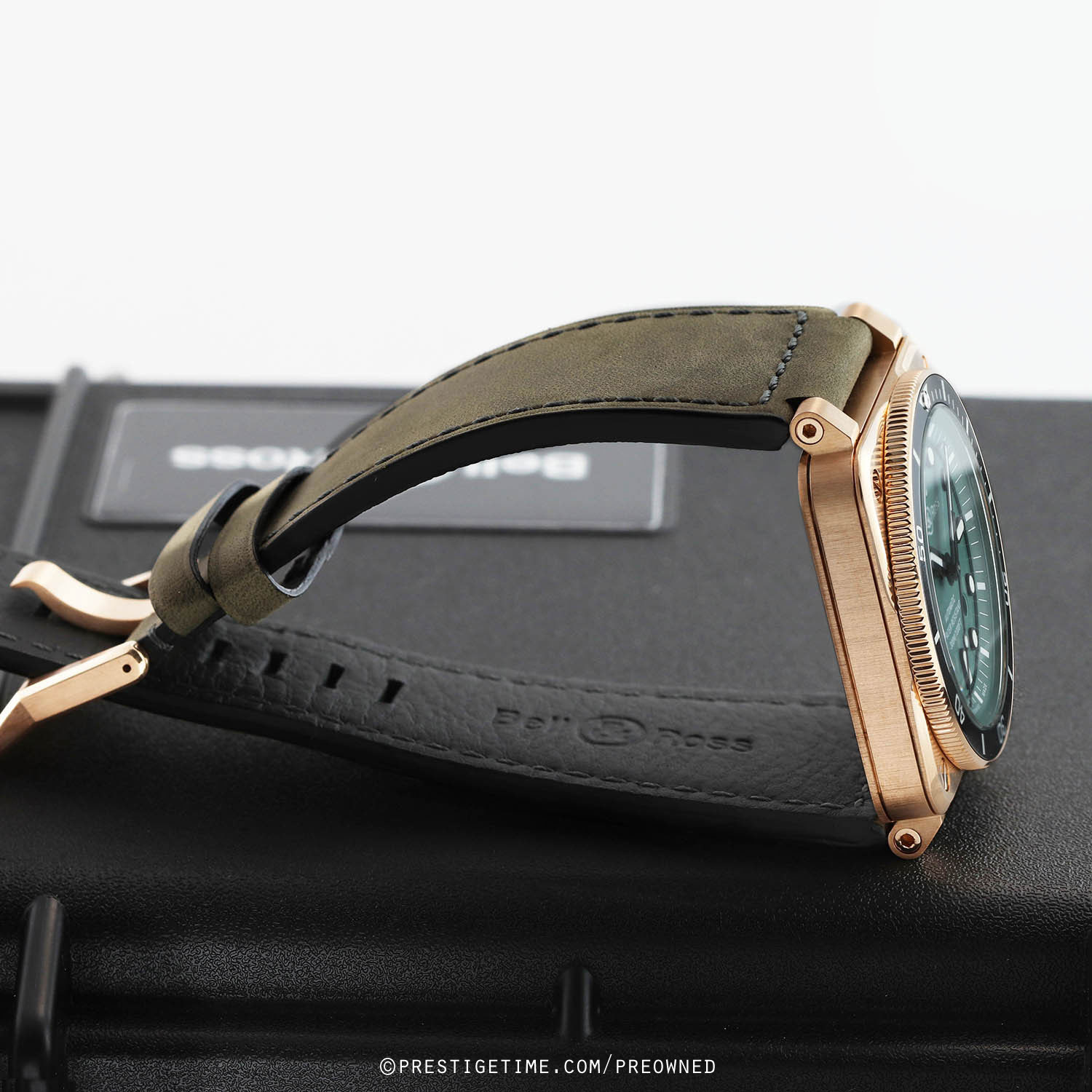 1. Fitted on its original Bell & Ross black rubber strap with a bronze tang buckle. This strap is unworn in new condition with its full wear lifespan remaining.