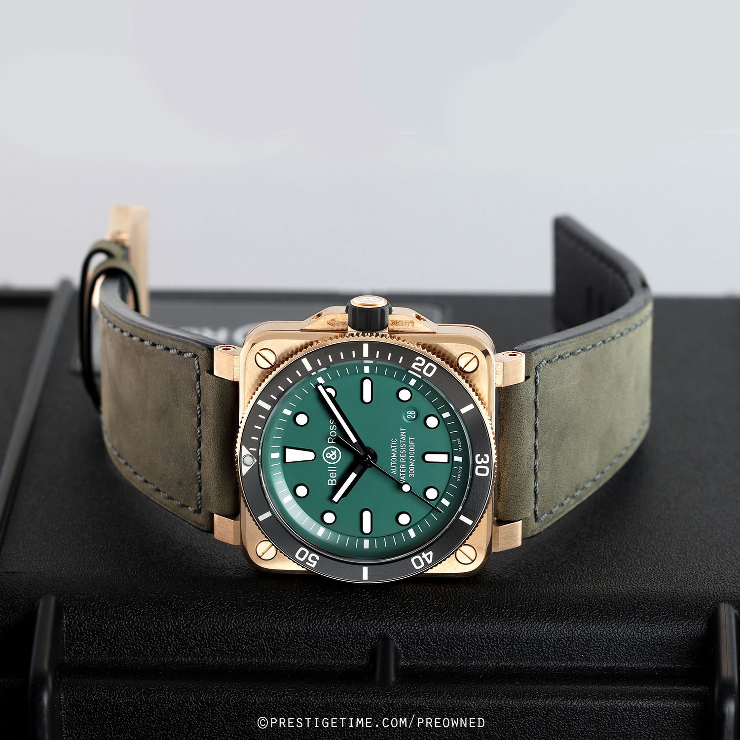 Pre-owned Bell & Ross BR03-92 Diver Black & Green Bronze 42mm BR0392-D-LT-BR/SRB