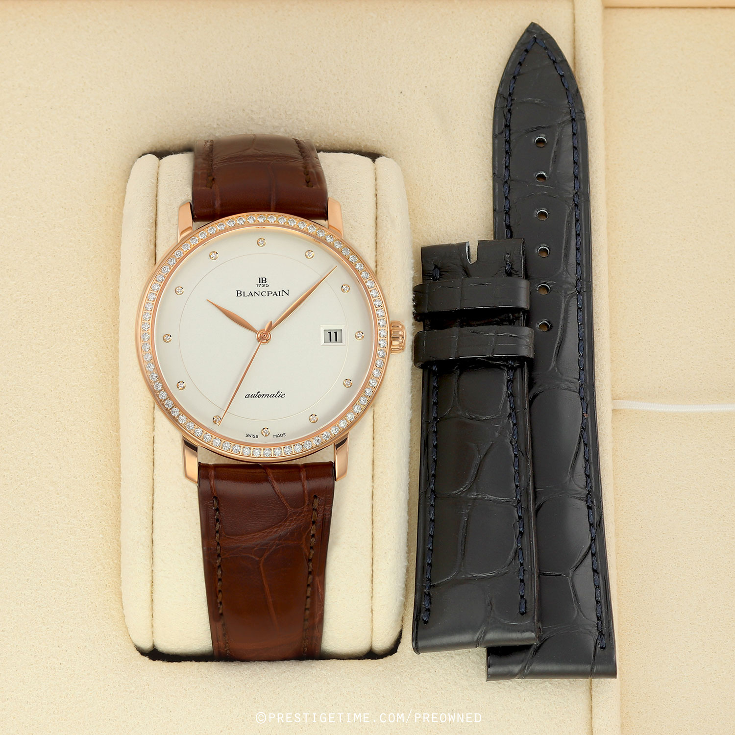 - Delivered with an additional Blancpain original black alligator leather strap. The strap is in unworn condition with its full wear lifespan remaining.
