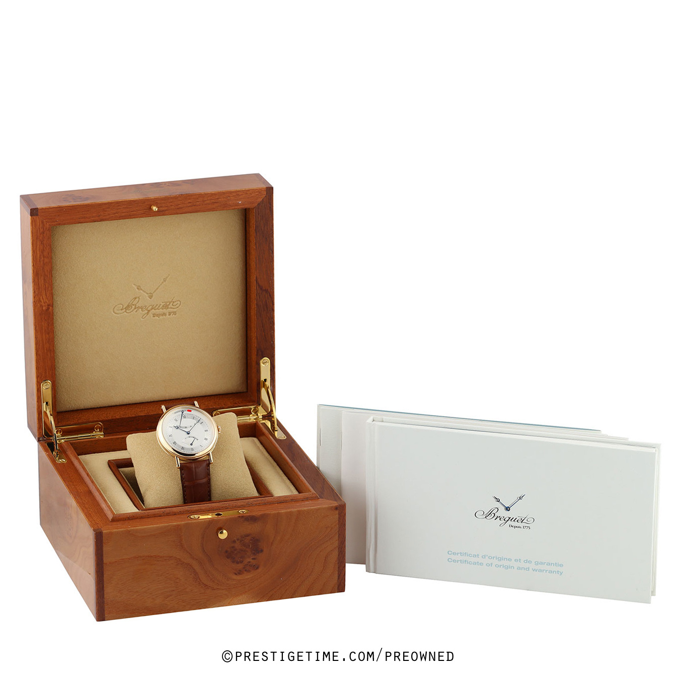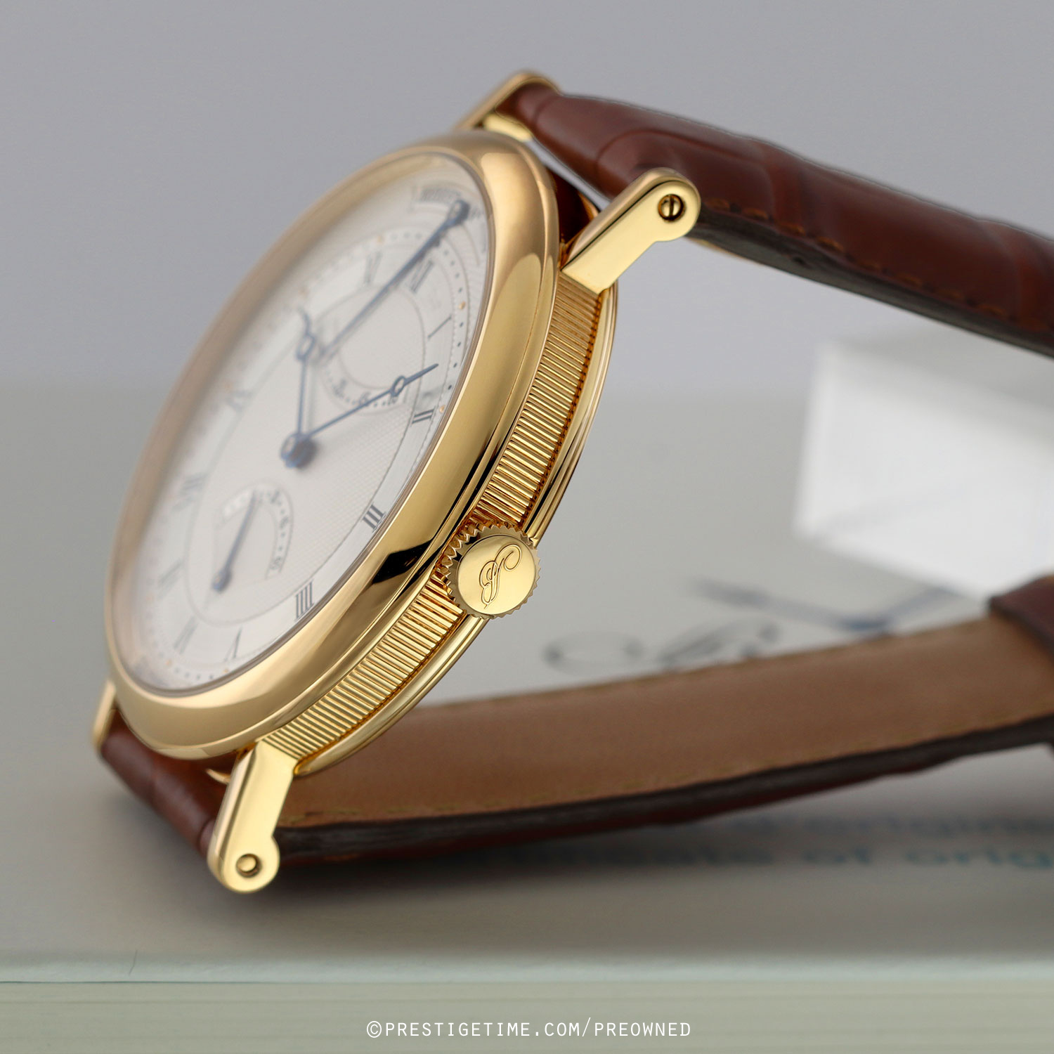 Strap: Fitted on a new Breguet original brown alligator leather strap with a solid 18kt yellow gold deployant buckle. The strap is new & unworn with its full wear lifespan remaining.