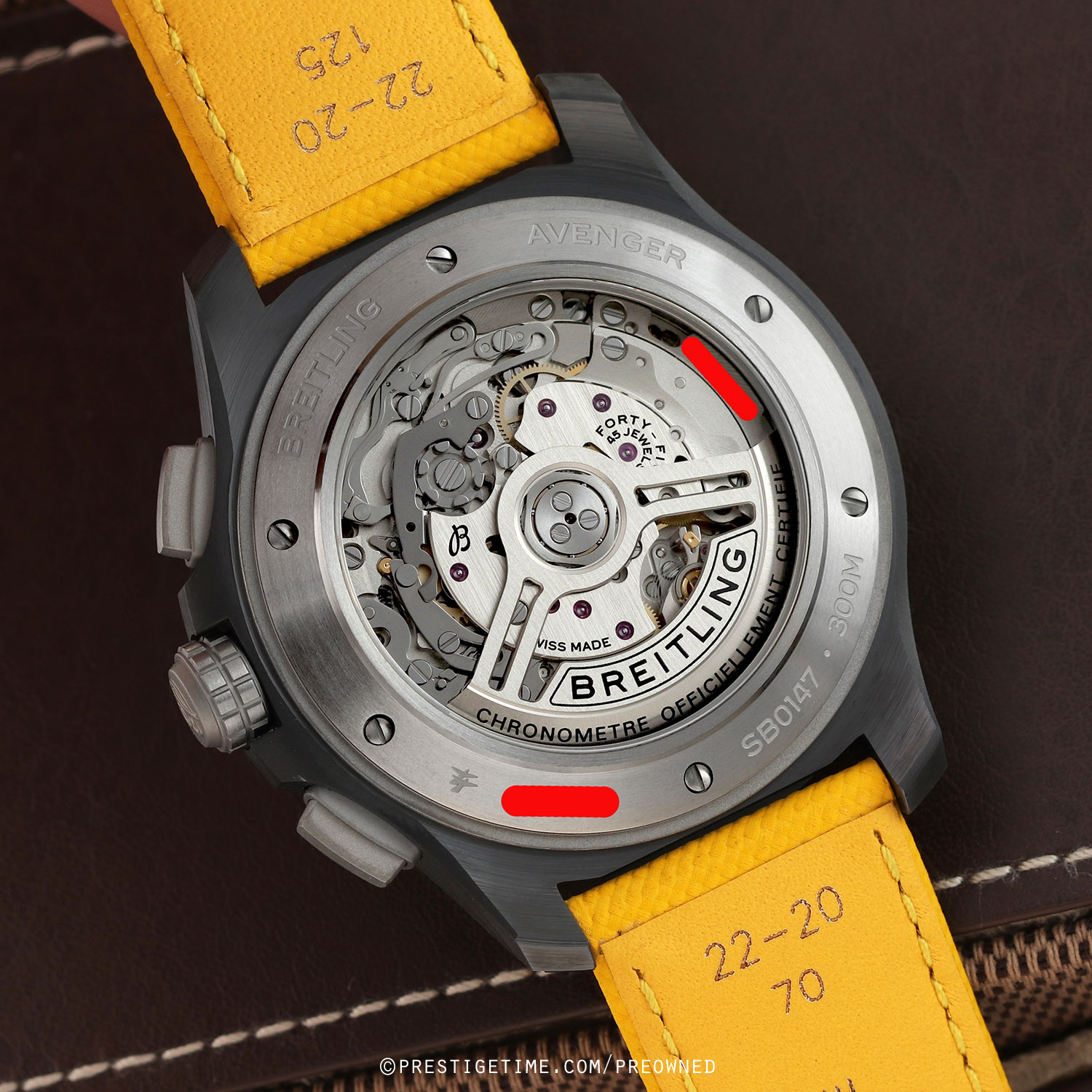 Movement: Powered by a Breitling in-house caliber 01, which beats at 28,000 vph (4Hz), contains 40 jewels, and has a power reserve of +/- 70 hours.