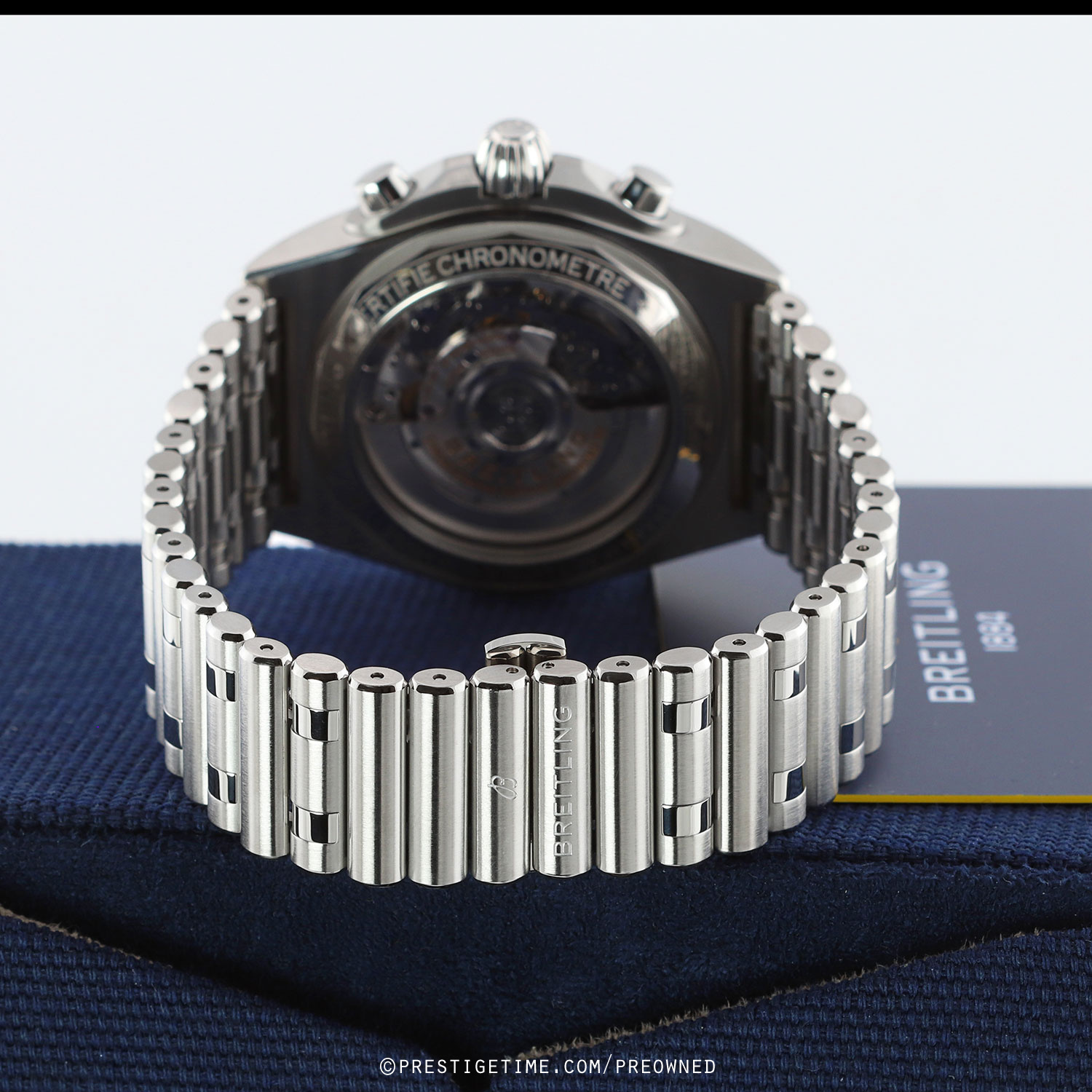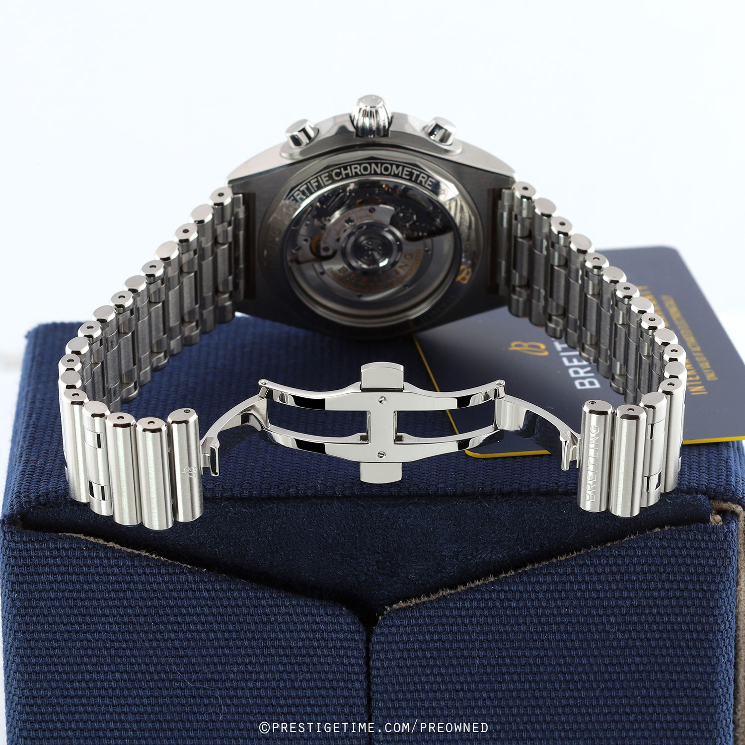 - Fitted on its original Breitling brushed & polished stainless steel Rouleaux style bracelet with a push-button folding clasp. The bracelet is fully linked and will fit up to a 8"+ wrist.