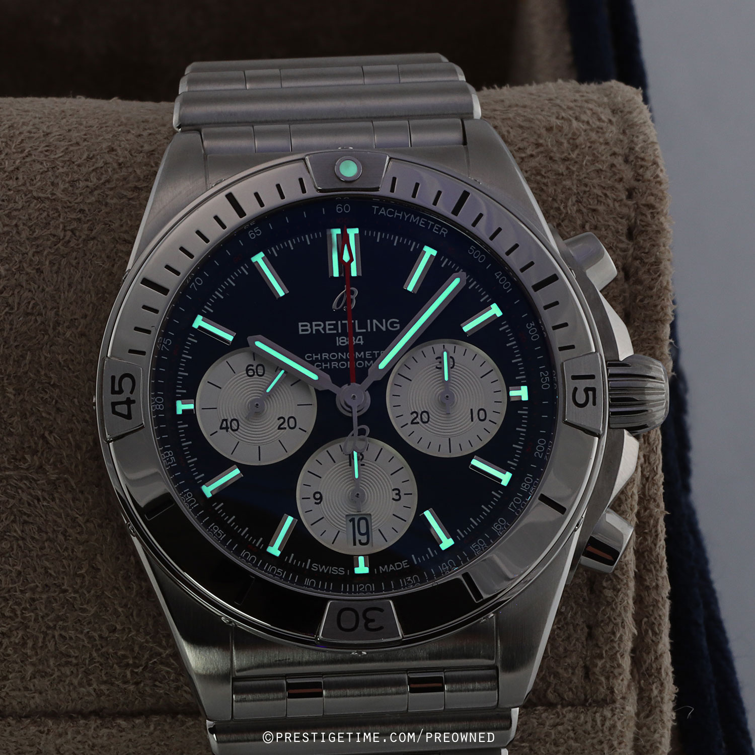 Movement: Powered by a Breitling in-house caliber 01, which beats at 28,000 vph (4Hz), contains 47 jewels, and has a power reserve of +/- 70 hours.