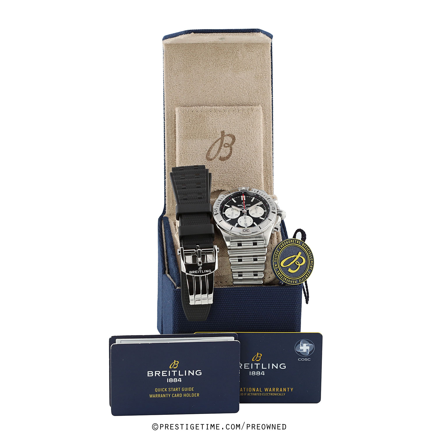 - Included is an additional Breitling original black rubber Rouleaux inspired strap with a push-button stainless steel folding buckle. The strap is in excellent near new condition with its full wear lifespan remaining. We would grade this trap in 99%+ condition.
