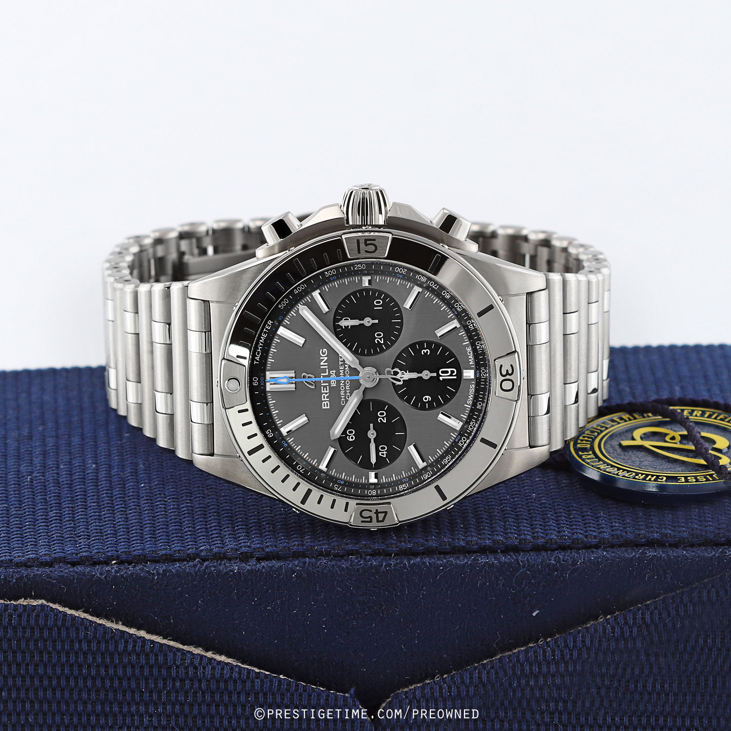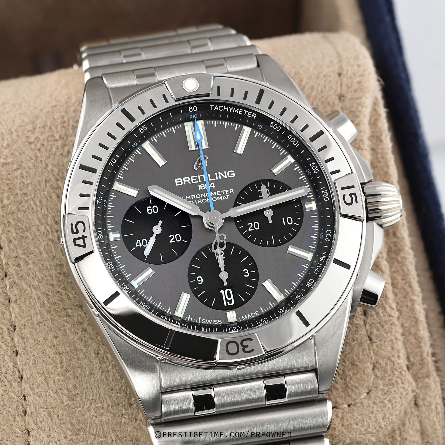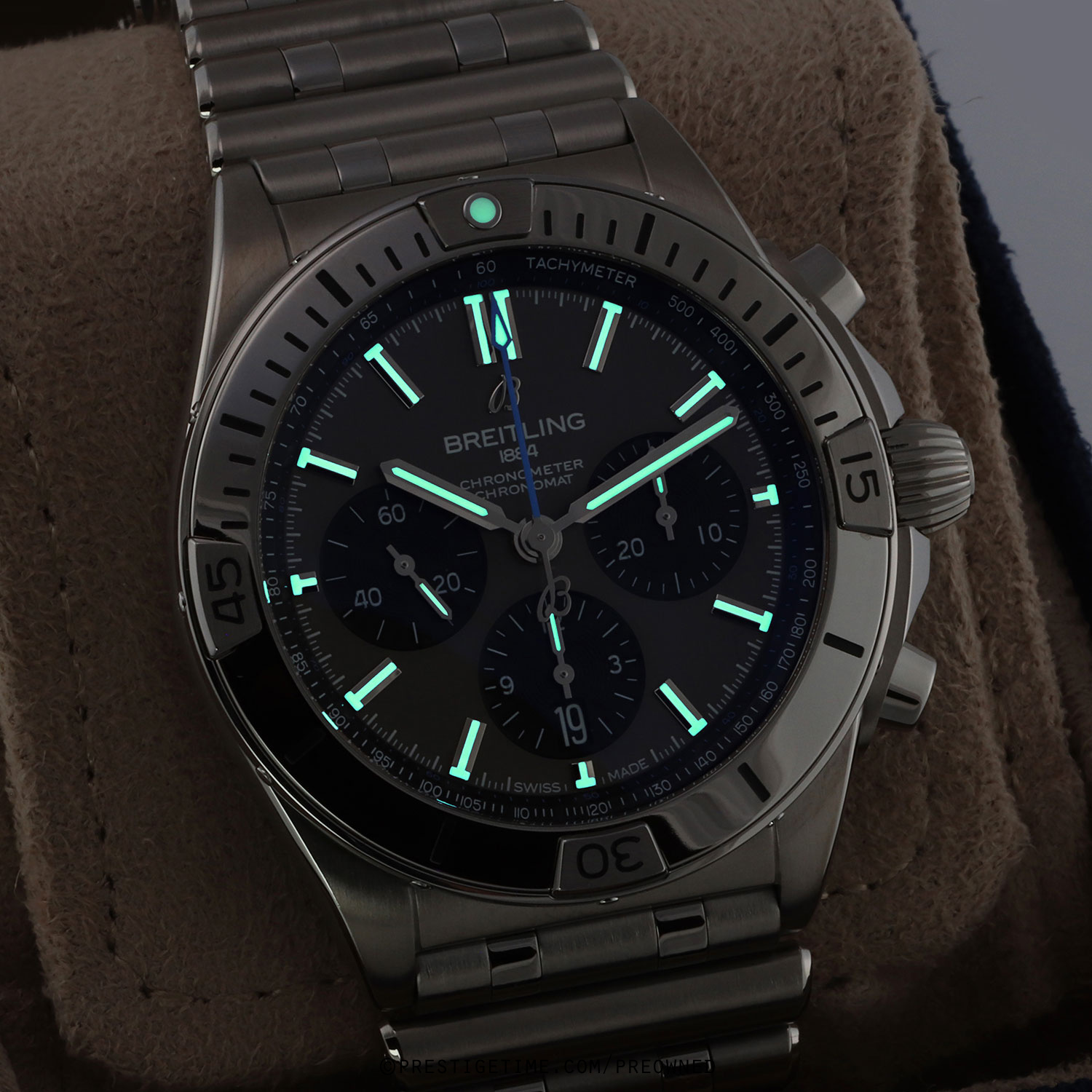 Movement: Powered by a Breitling in-house caliber 01, which beats at 28,000 vph (4Hz), contains 47 jewels, and has a power reserve of +/- 70 hours.