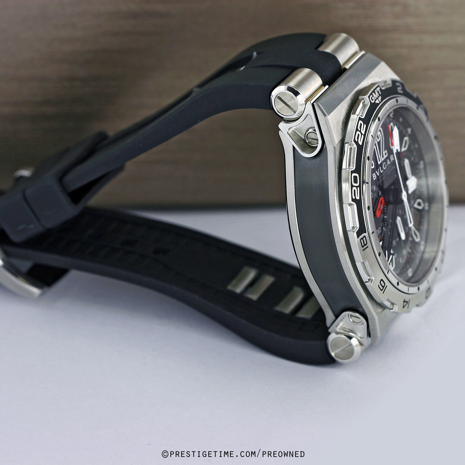 Movement: Powered by a Bulgari caliber BVL312 (base ETA/Valjoux 7750), which beats at 28,800 vph, contains 27 jewels & has a power reserve of +/- 48 hours.