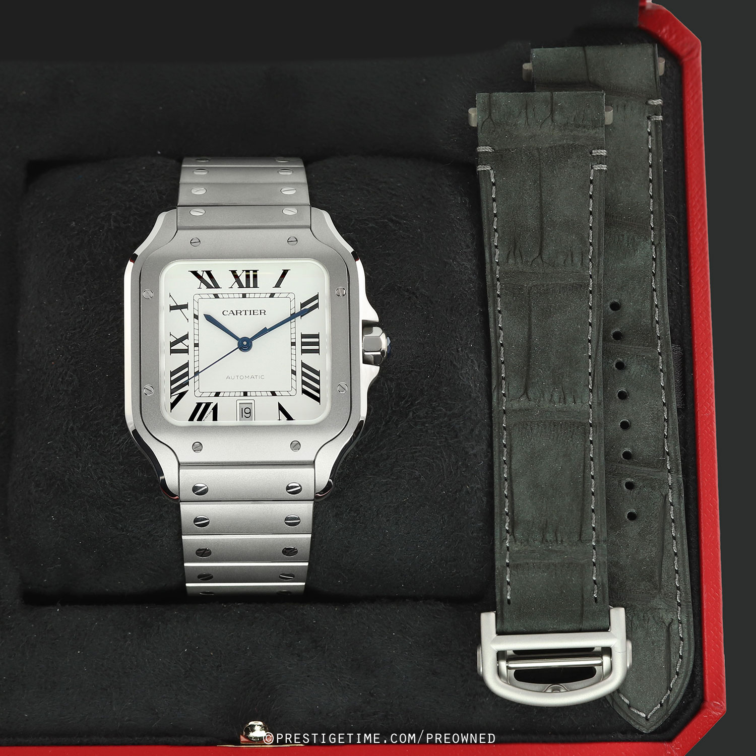 - Delivered with an addition Cartier original dark grey nuck (semi-rawhide finish) grey alligator leather strap with a stainless steel deployant clasp. The strap is unworn, brand new & crisp with its full wear lifespan remaining.
