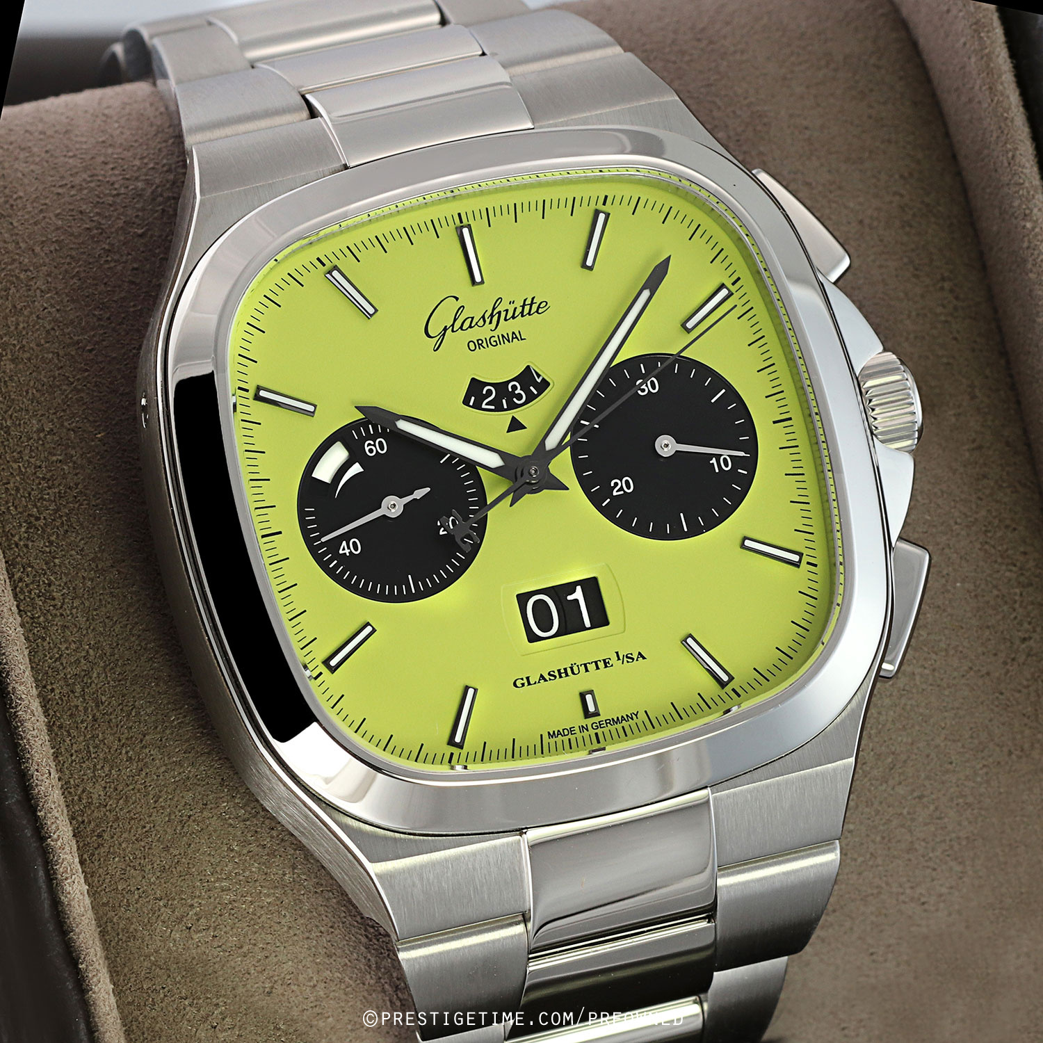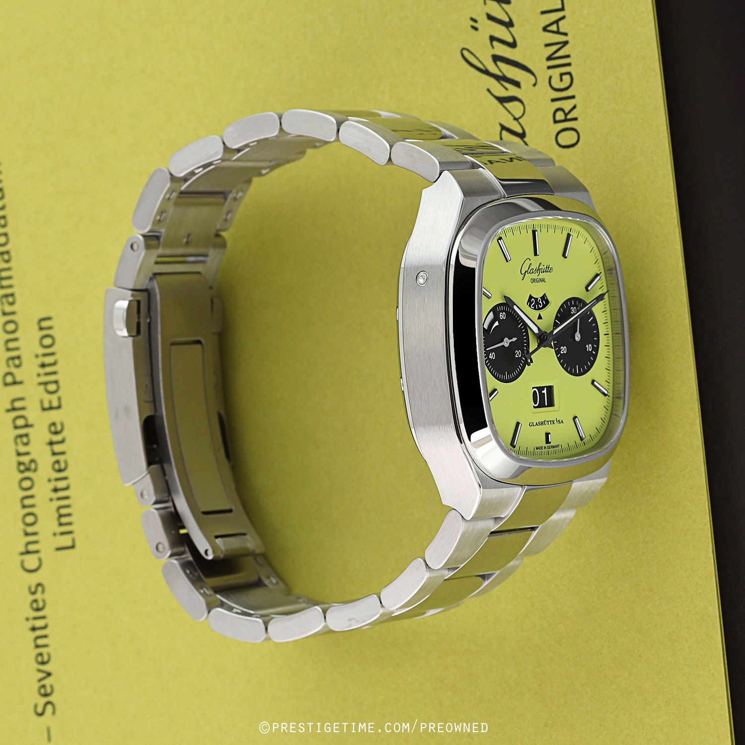 Seventies Chronograph Panorama Date FUSION, limited & numbered edition of 100 pieces featuring a lime-green dial.