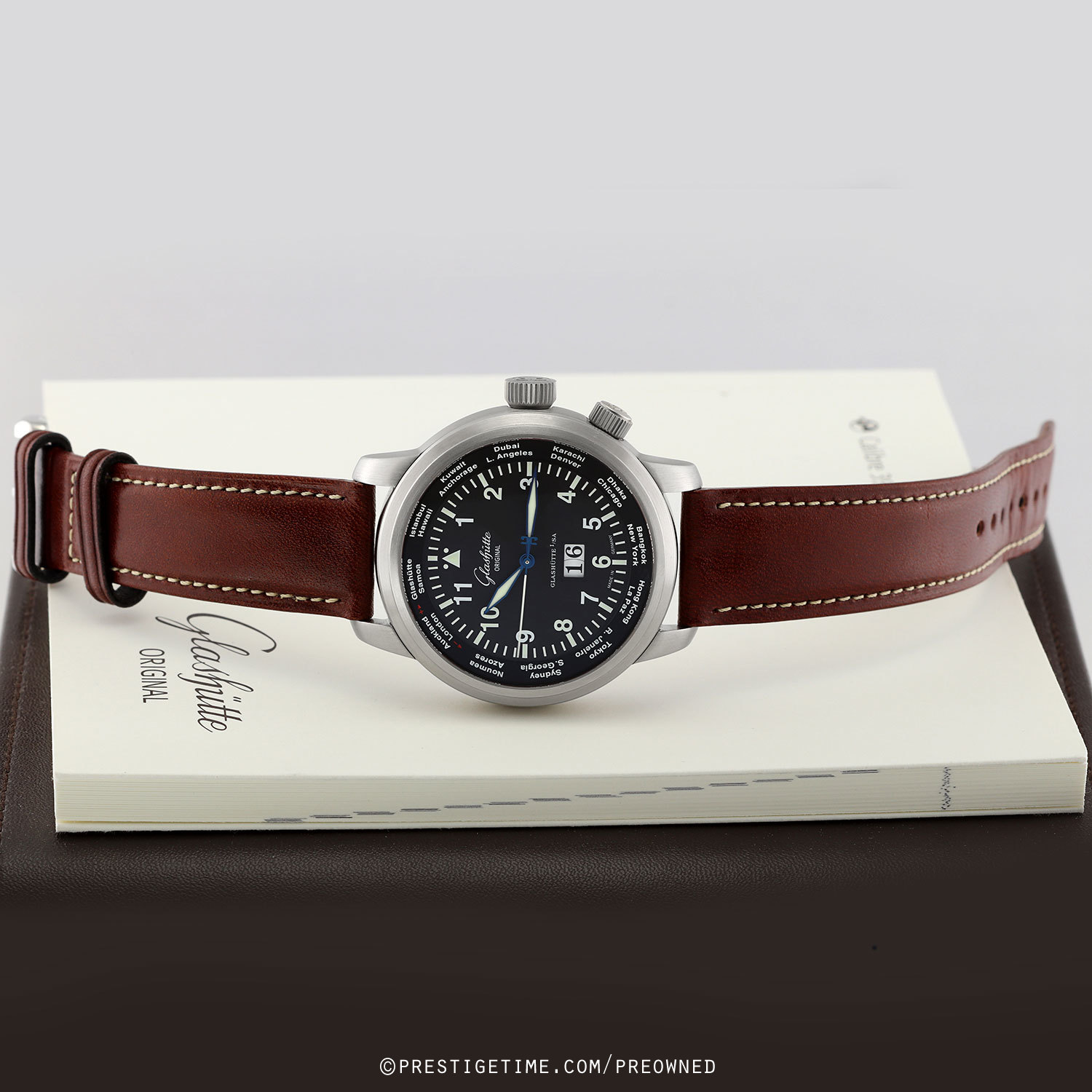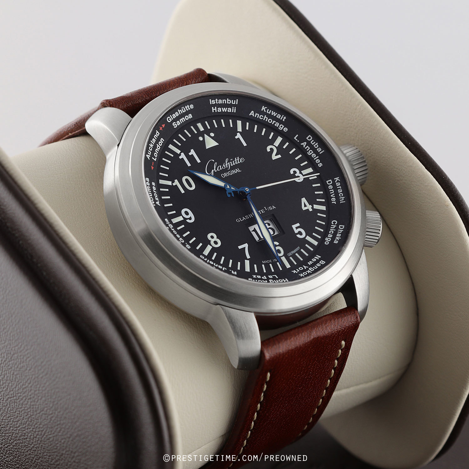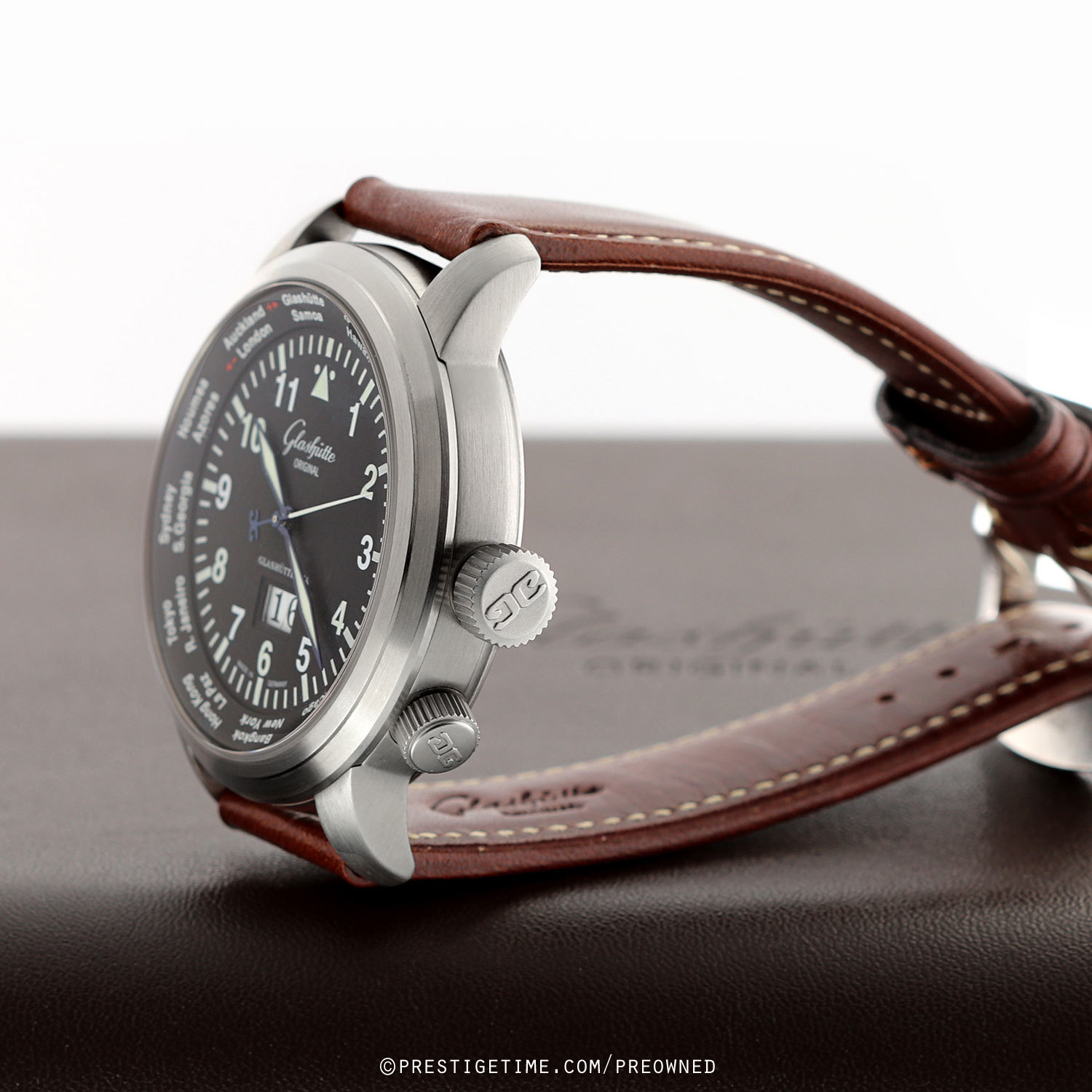 - WorldView displayed via the dial flange, set via the crown at 4 o'clock. By aligning the home city on the WorldView disc to the current time, the user can easily read different 24 world time-zones at a glance.