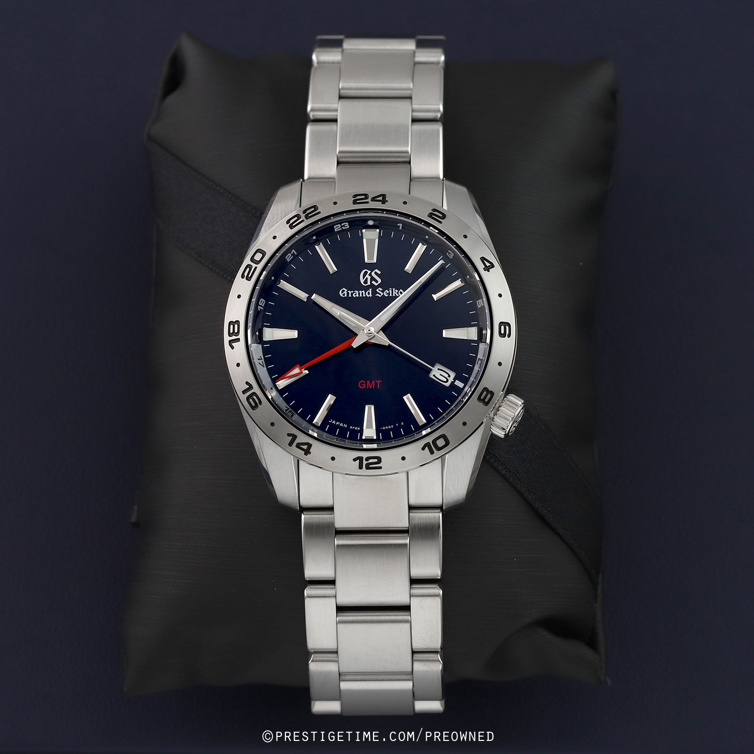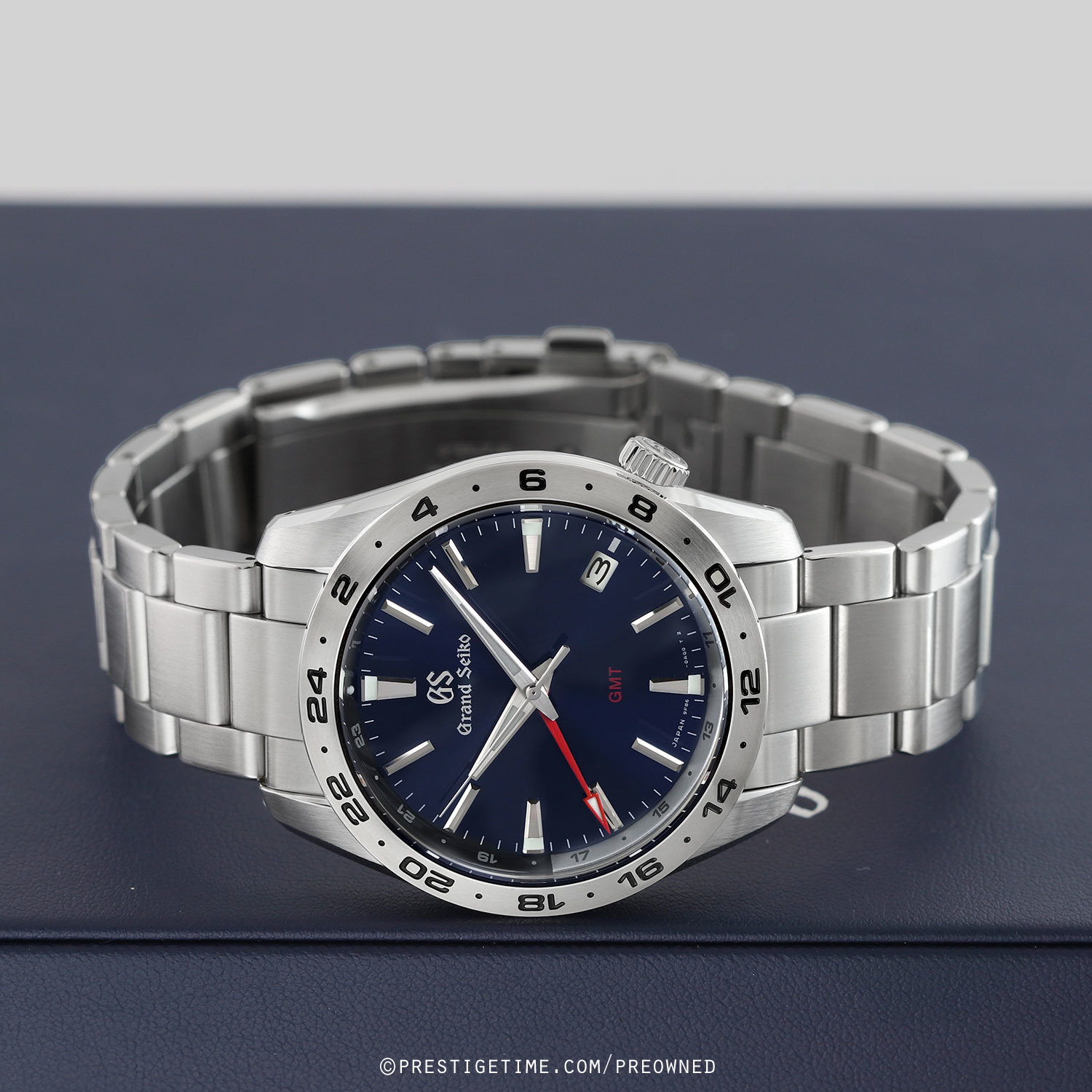 Case: Brushed & polished stainless steel case. Polished surfaces have been hand-polished using the famed Zaratsu polishing technique. Brushed & polished stainless steel bezel with 24 hour indications. Blue dial. Faceted brushed & polished hour & minute hands with luminous fill. Polished seconds hand. Applied faceted brushed & polished index hour markers, 12/3/6/9 with luminous fill. Fine printed minutes/seconds track. Date window at 4 o'clock. Blue & grey dial flange