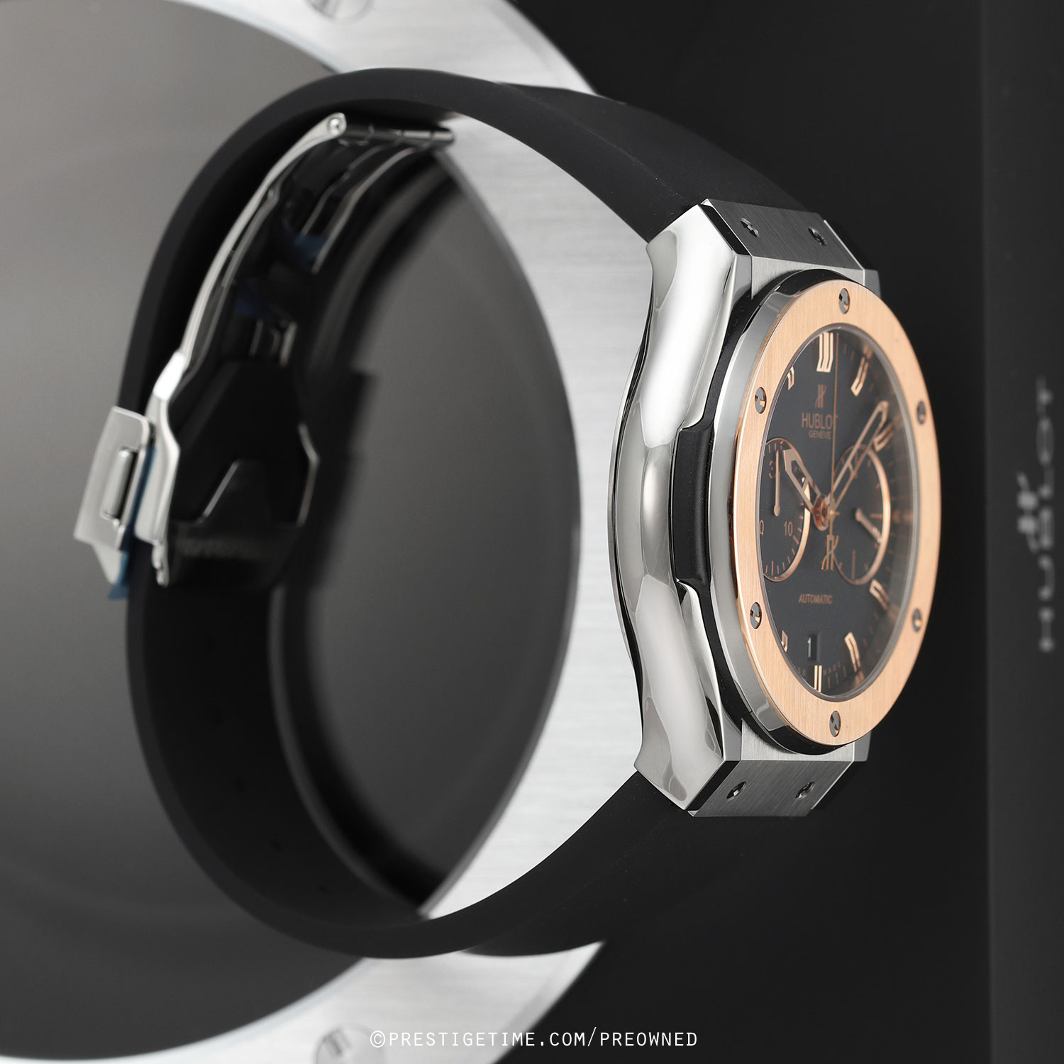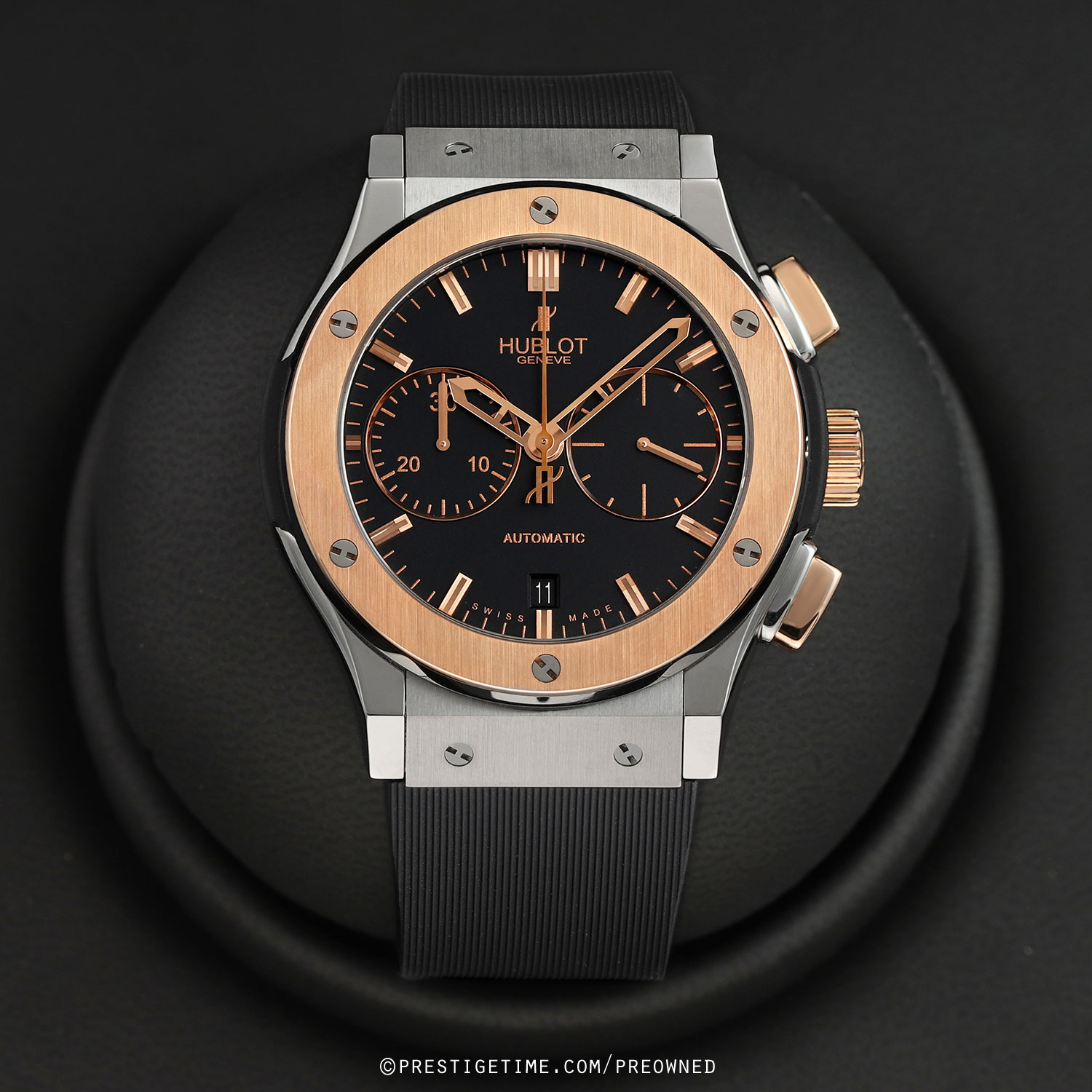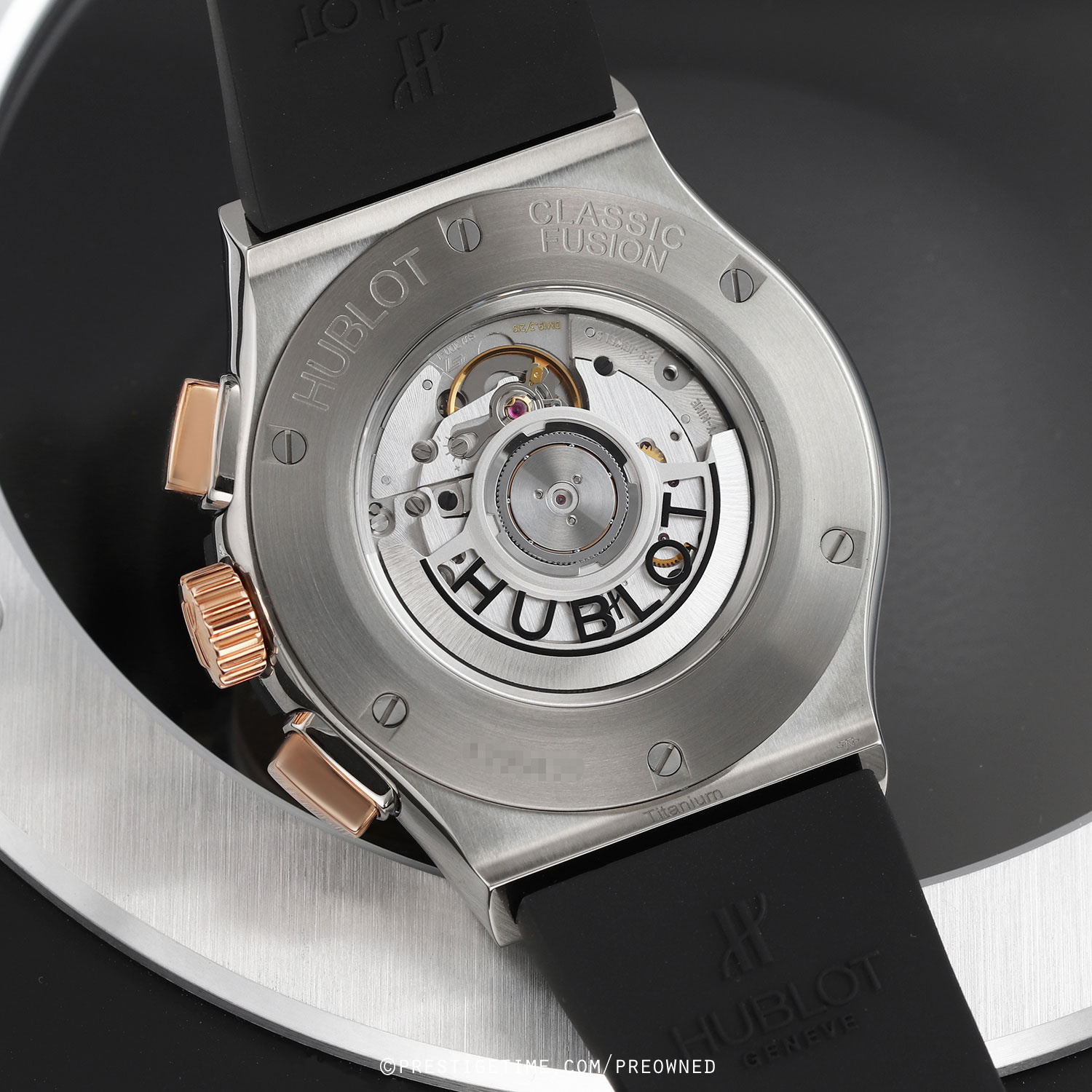 Movement: Powered by a Hublot caliber HUB1143 (base SW300-1 with Dubois-Depraz chrono module), beats at 28,800 vph (4Hz), contains 59 jewels & a power reserve of +/- 42 hours