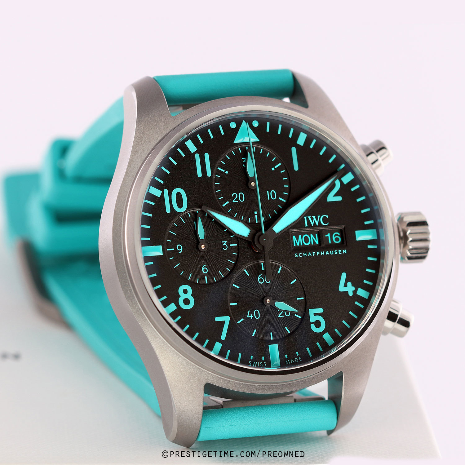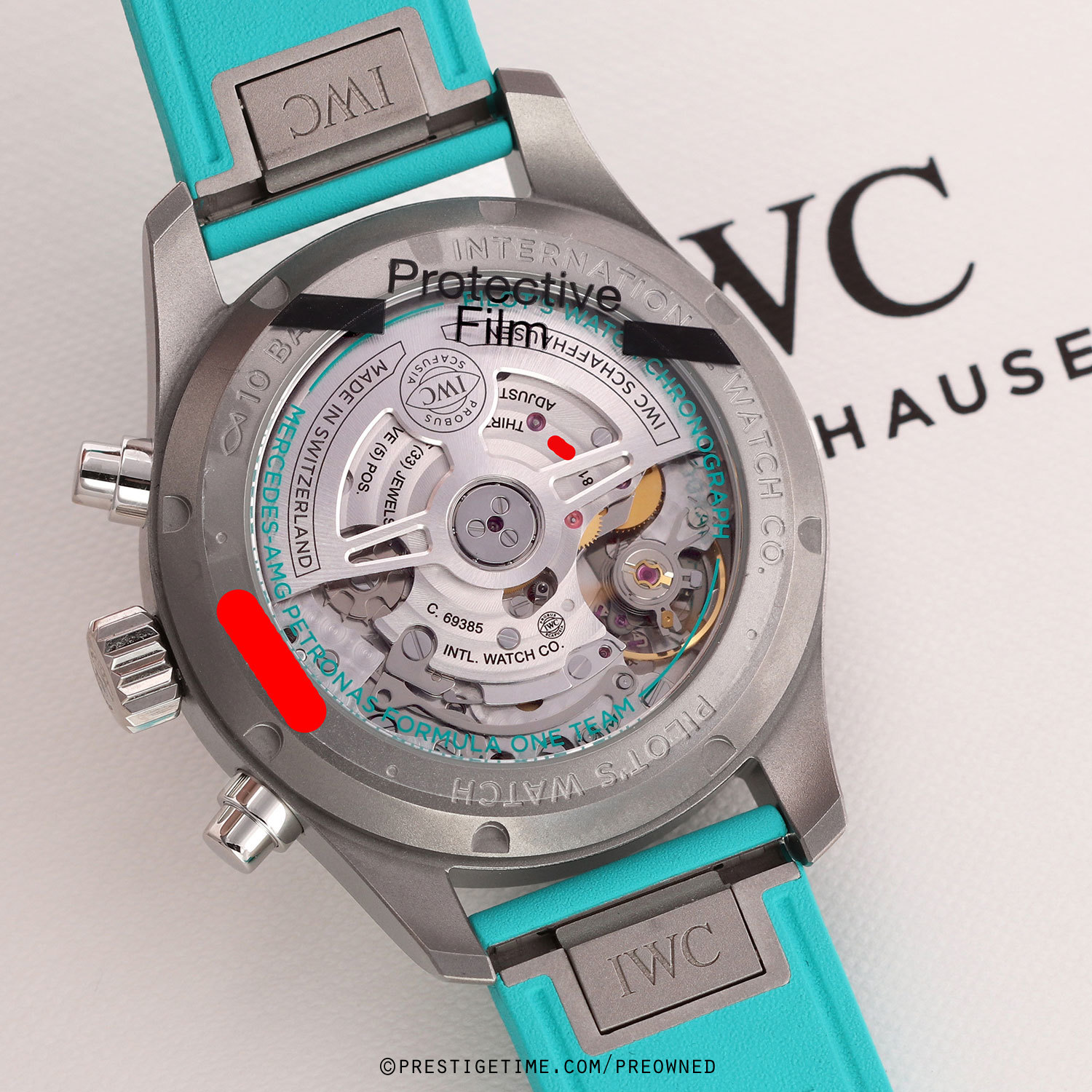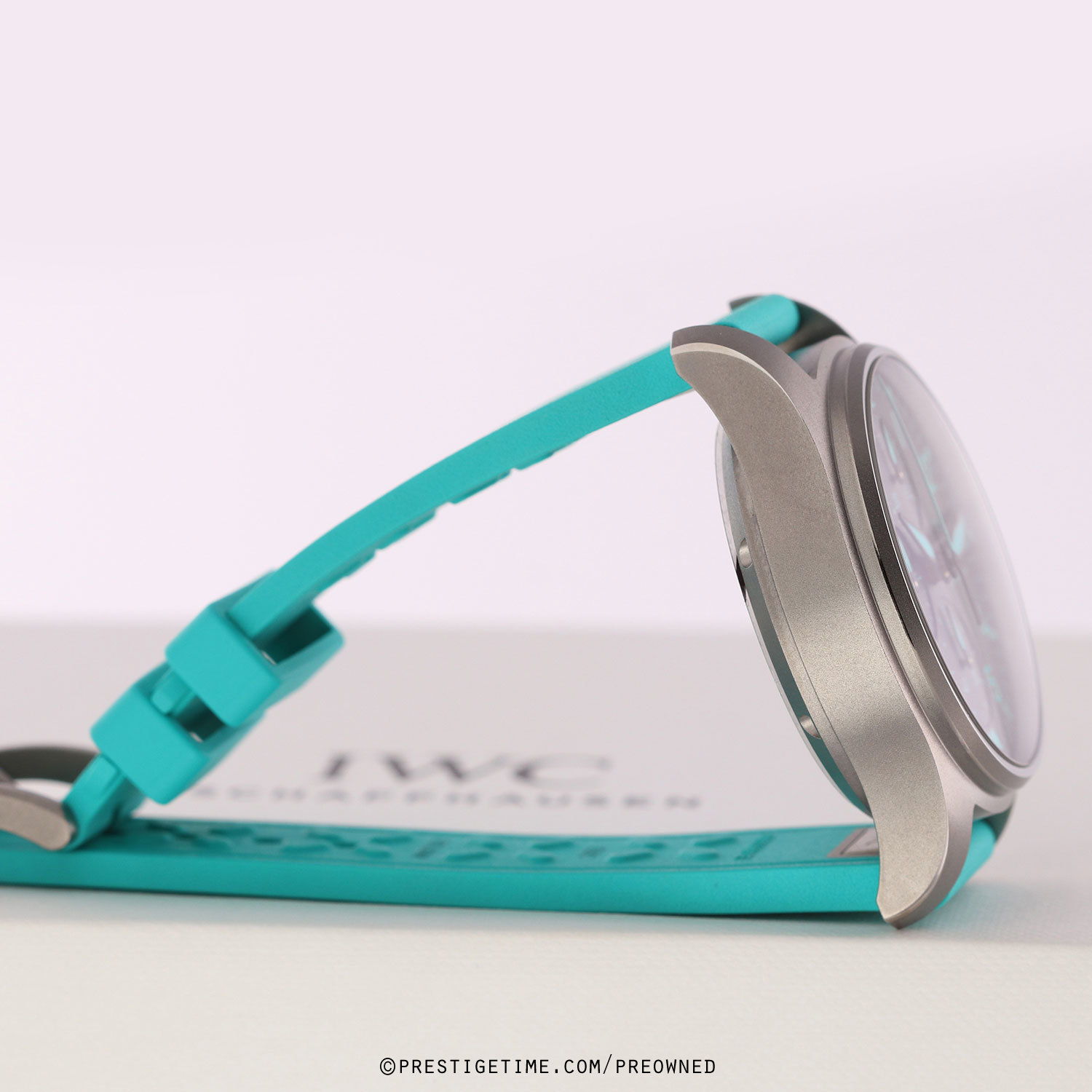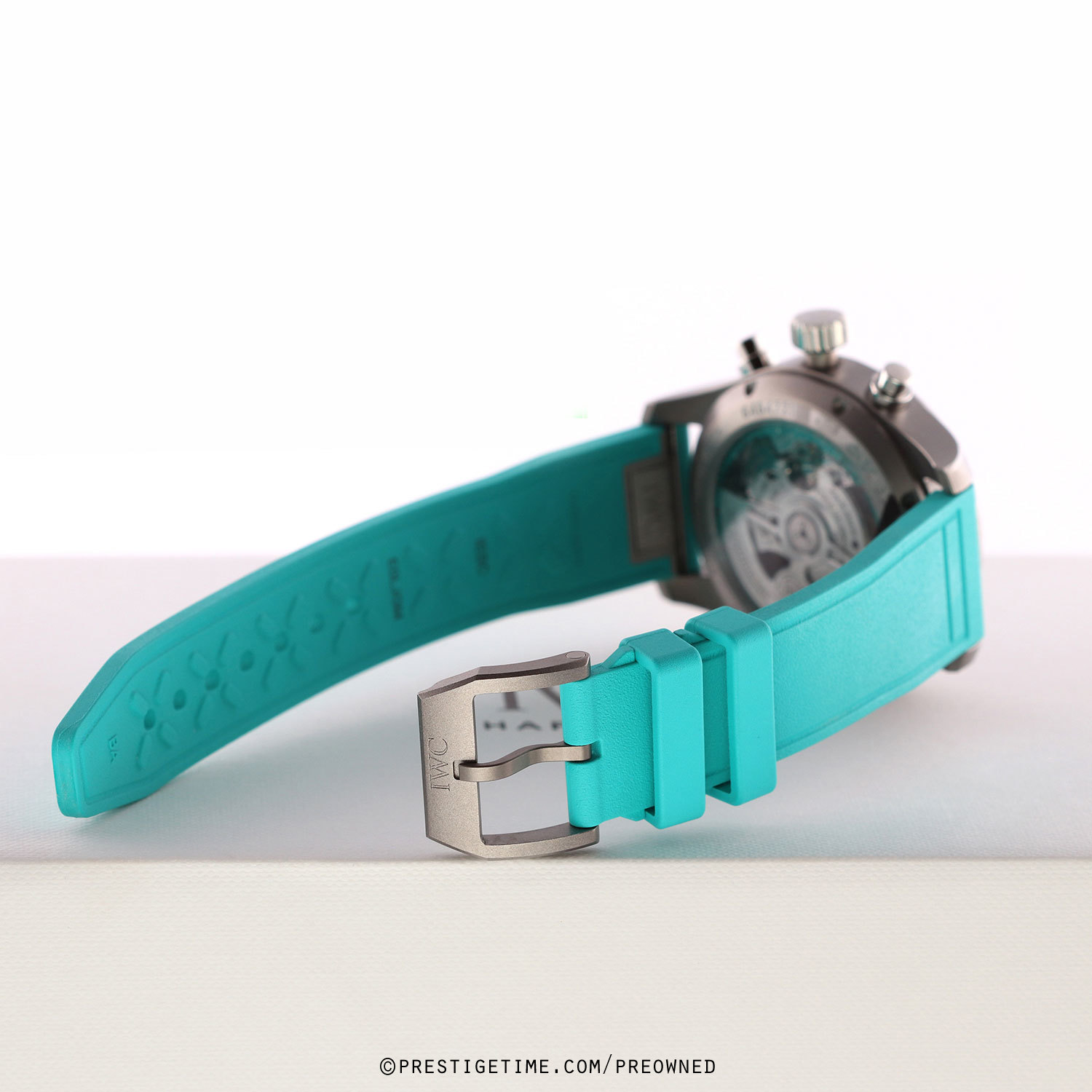 - Fitted on its original IWC Petronas=green colored rubber strap with a sandblasted titanium buckle. The strap is brand new & unworn with its complete wear lifespan remaining.
