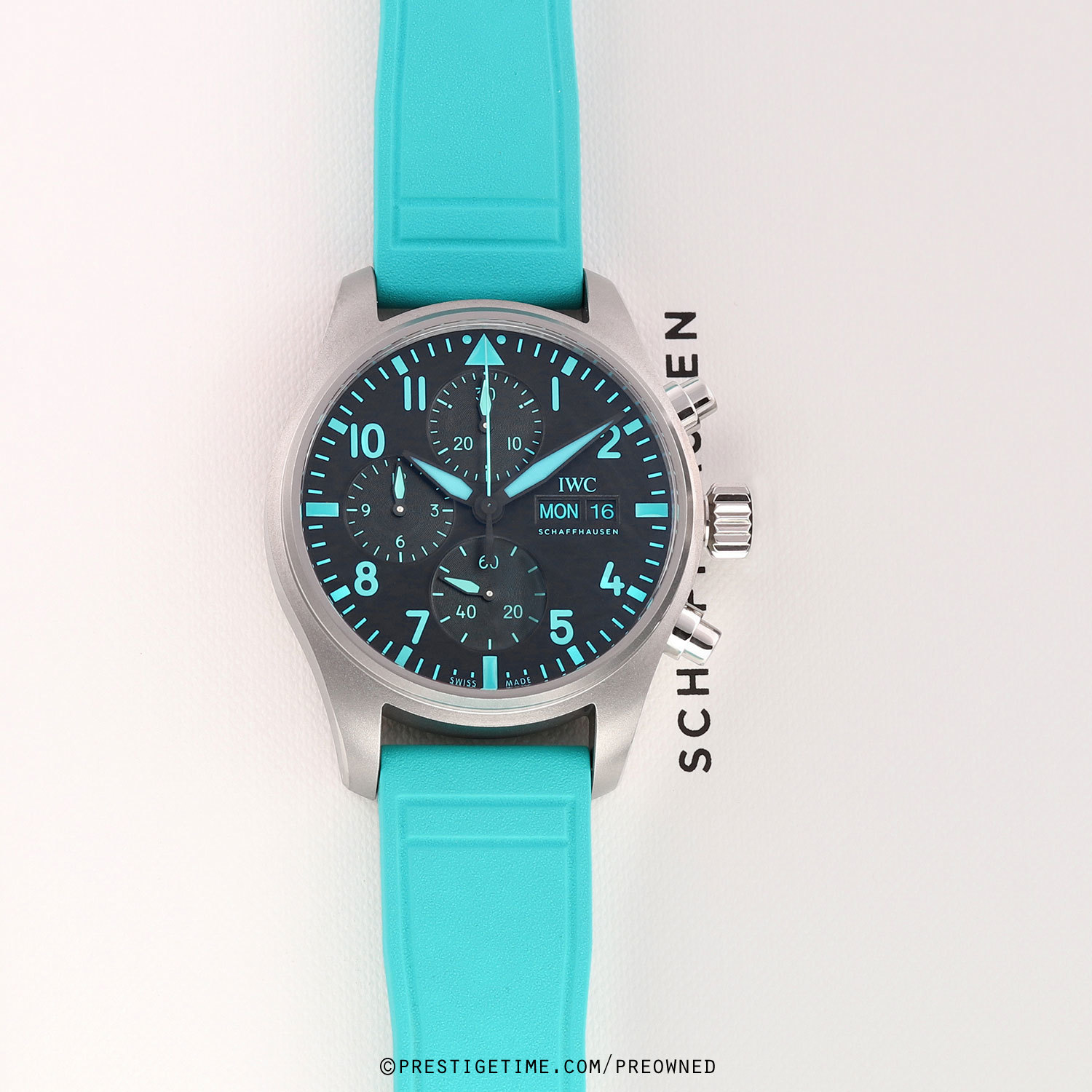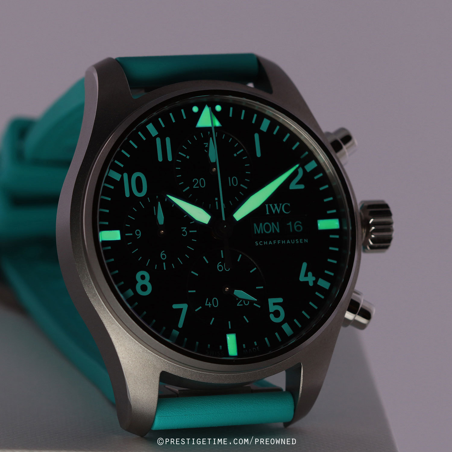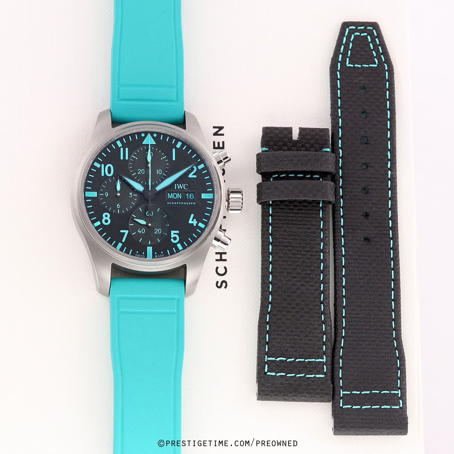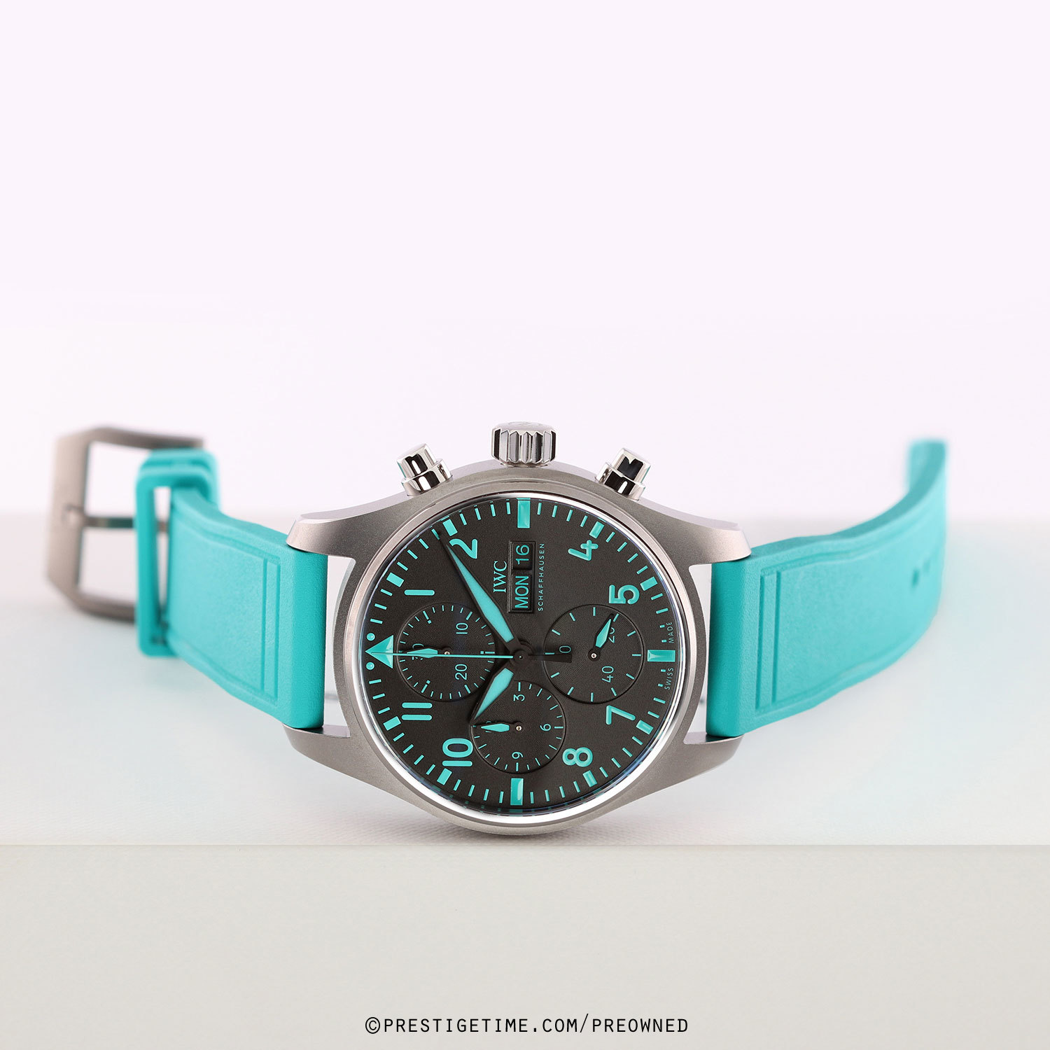 - Fitted on its original IWC Petronas=green colored rubber strap with a sandblasted titanium buckle. The strap is brand new & unworn with its complete wear lifespan remaining.
