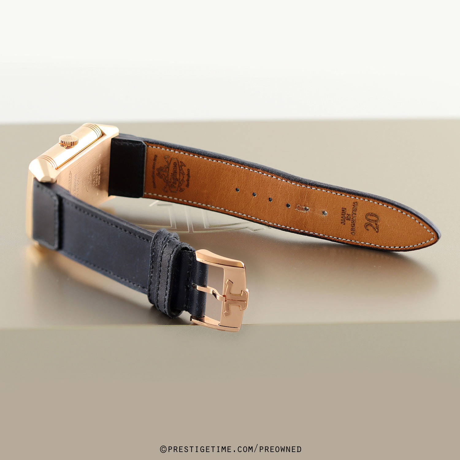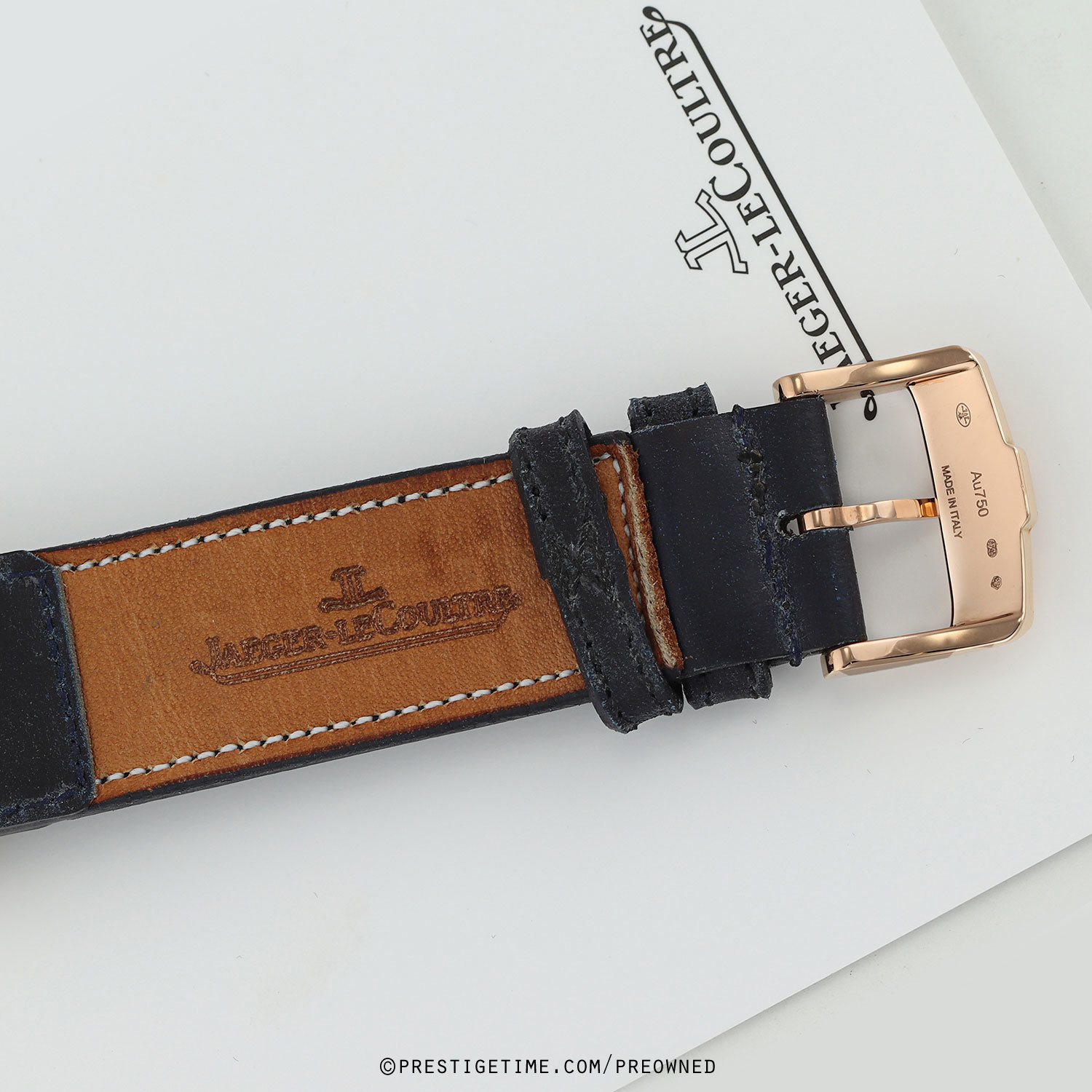 2. Delivered with an addition JLC original blue alligator leather strap. The alligator strap was worn a handful of times at most and is in near-new condition, with its full wear lifespan remaining. We would rate this strap as in 98% condition.