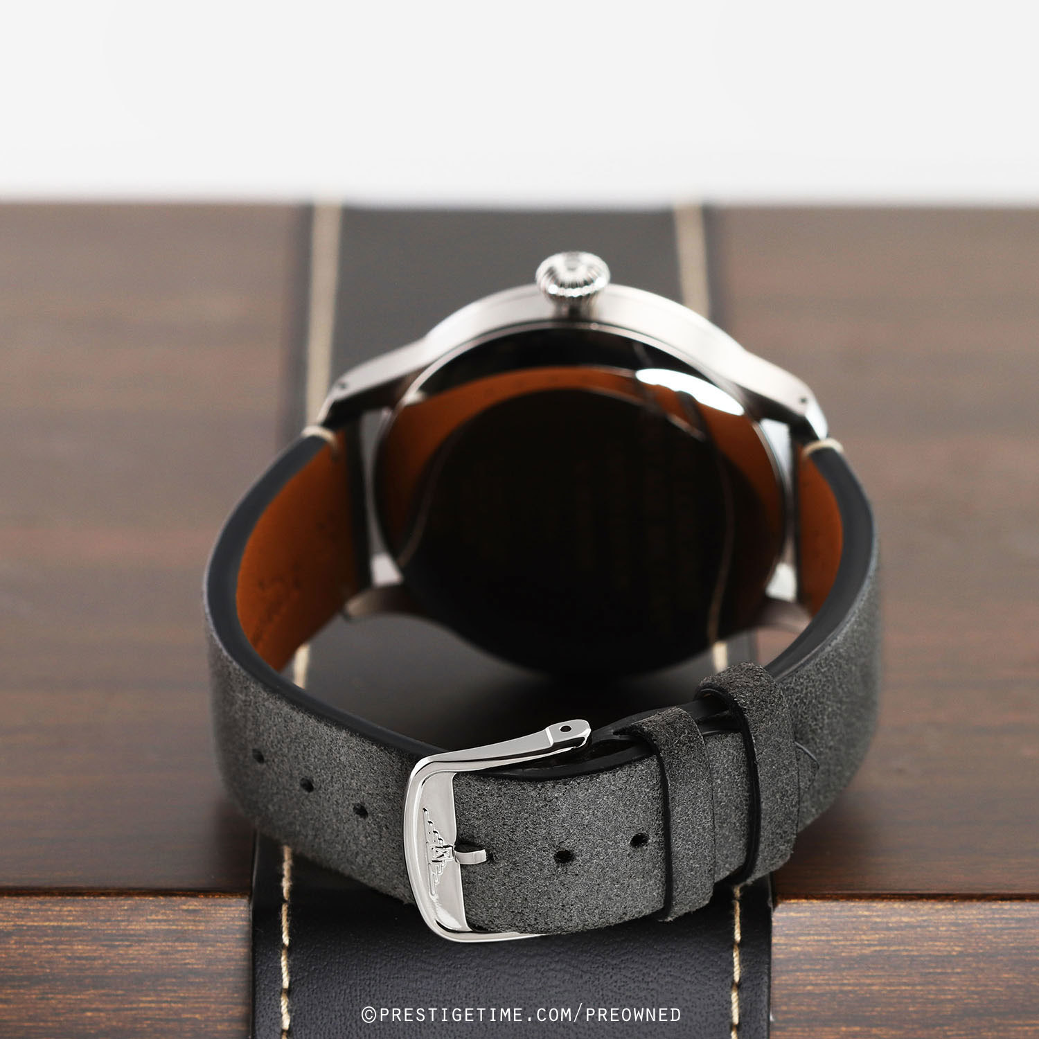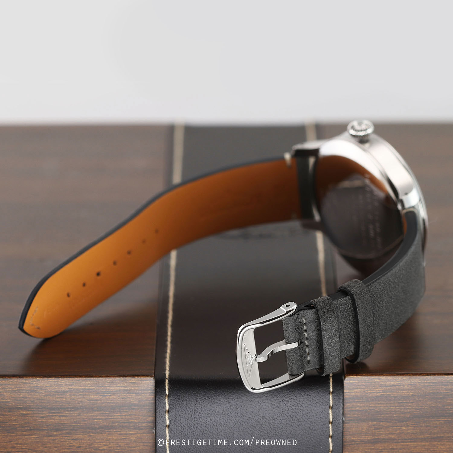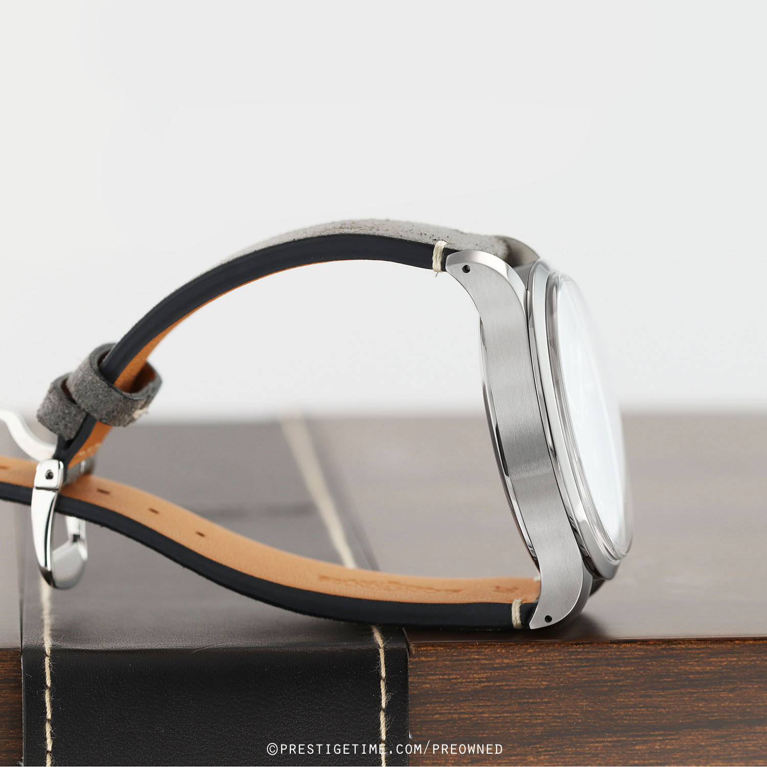 - Fitted on its original grey calfskin leather strap with a polished stainless steel tang buckle. The strap is in excellent near-new condition with the majority of its wear life-span remaining. We would rate the strap as in 95%
