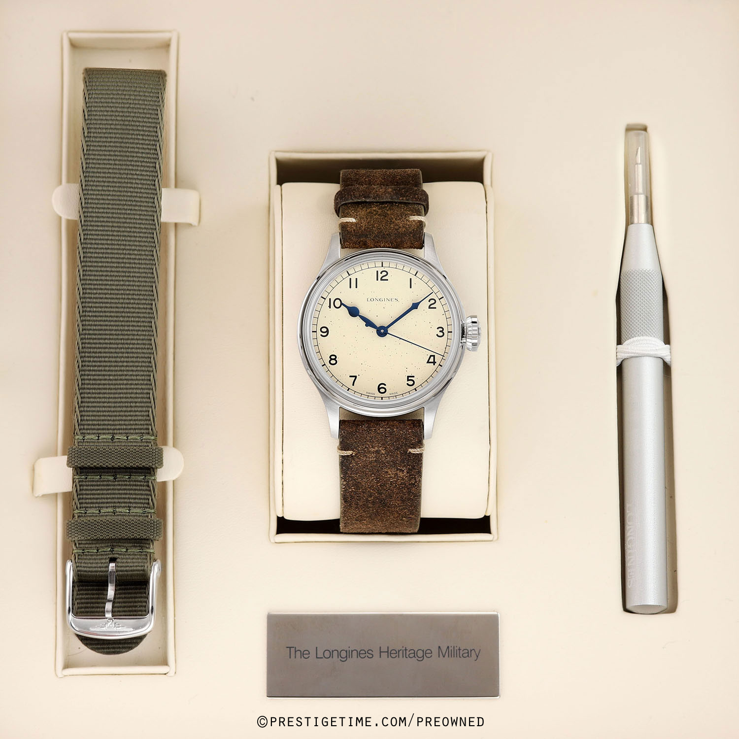 - With an additional green fabric NATO style strap with polished stainless steel tang buckle. This strap is unworn.