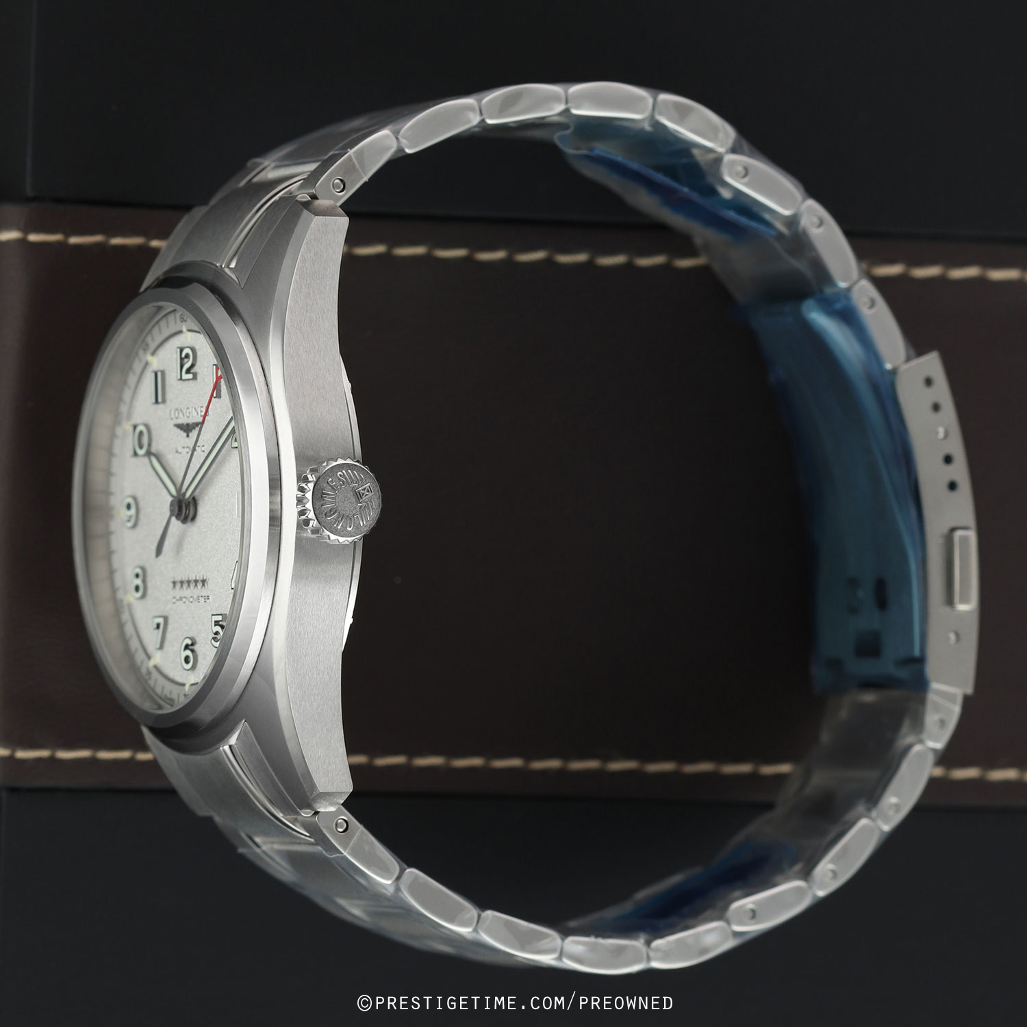 - An additional Longines original brown calfskin leather strap with contrasting white stitching & a stainless steel tang buckle. This strap is brand new & unworn with its full wear lifespan remaining.