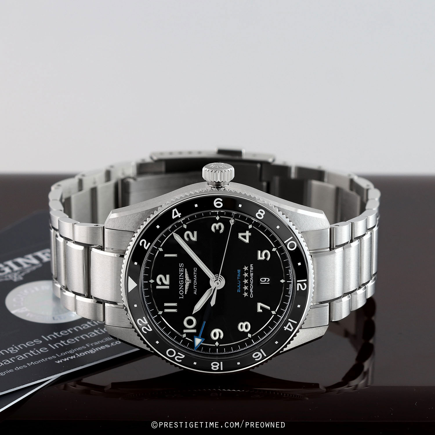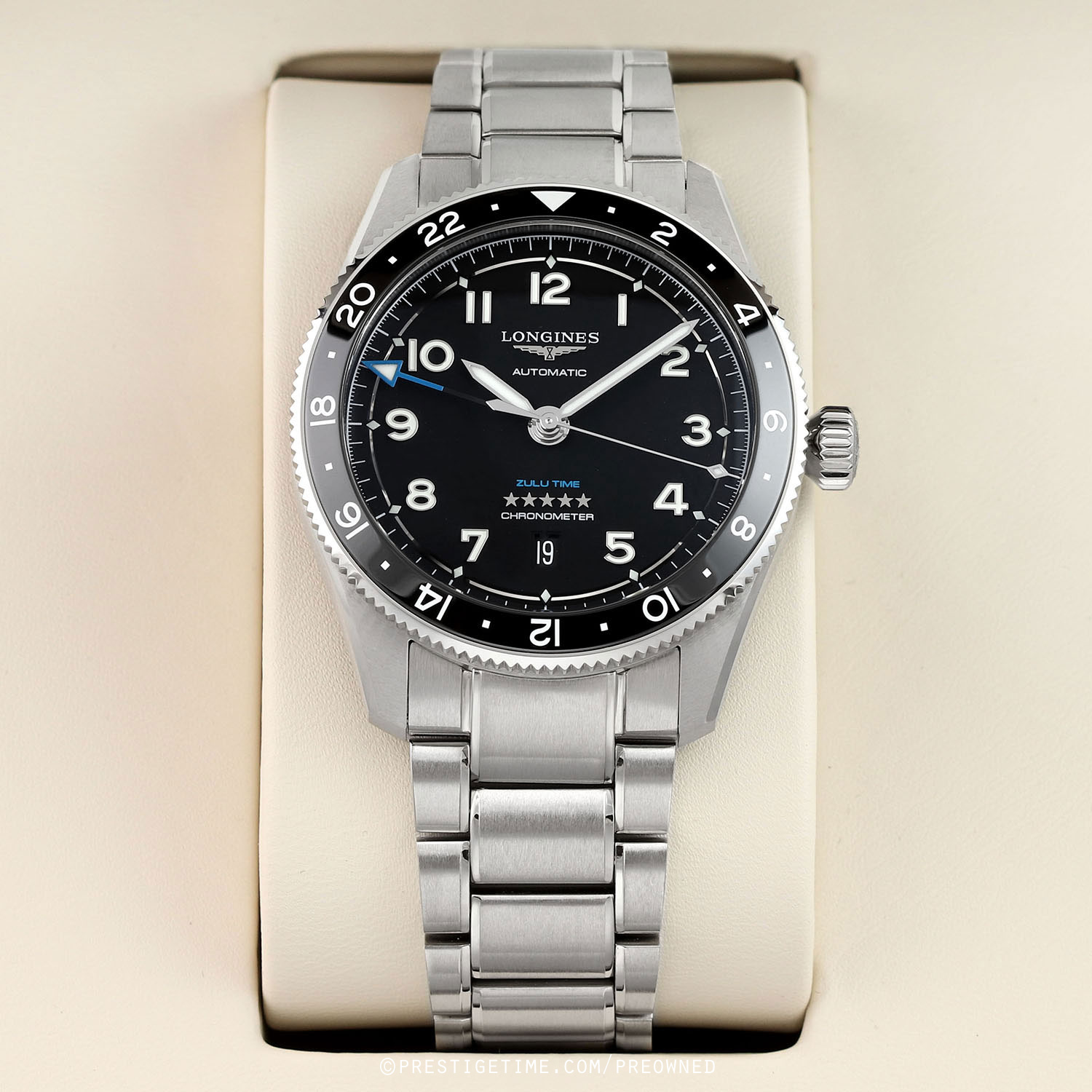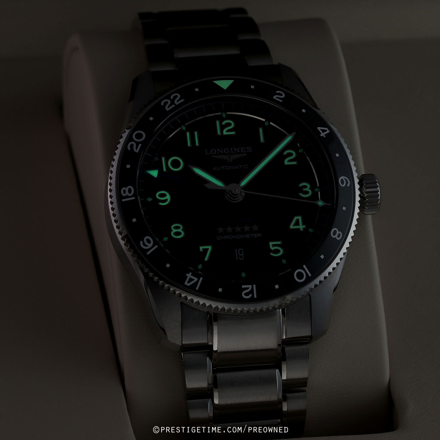 Movement: Powered by a Longines caliber L844.4 (base ETA A31.411), features a silicon balance spring, COSC Certified Chronometer, beats at 25'200 vph (3.5Hz), contains 21 jewels & has a power reserve of +/- 72 hours.