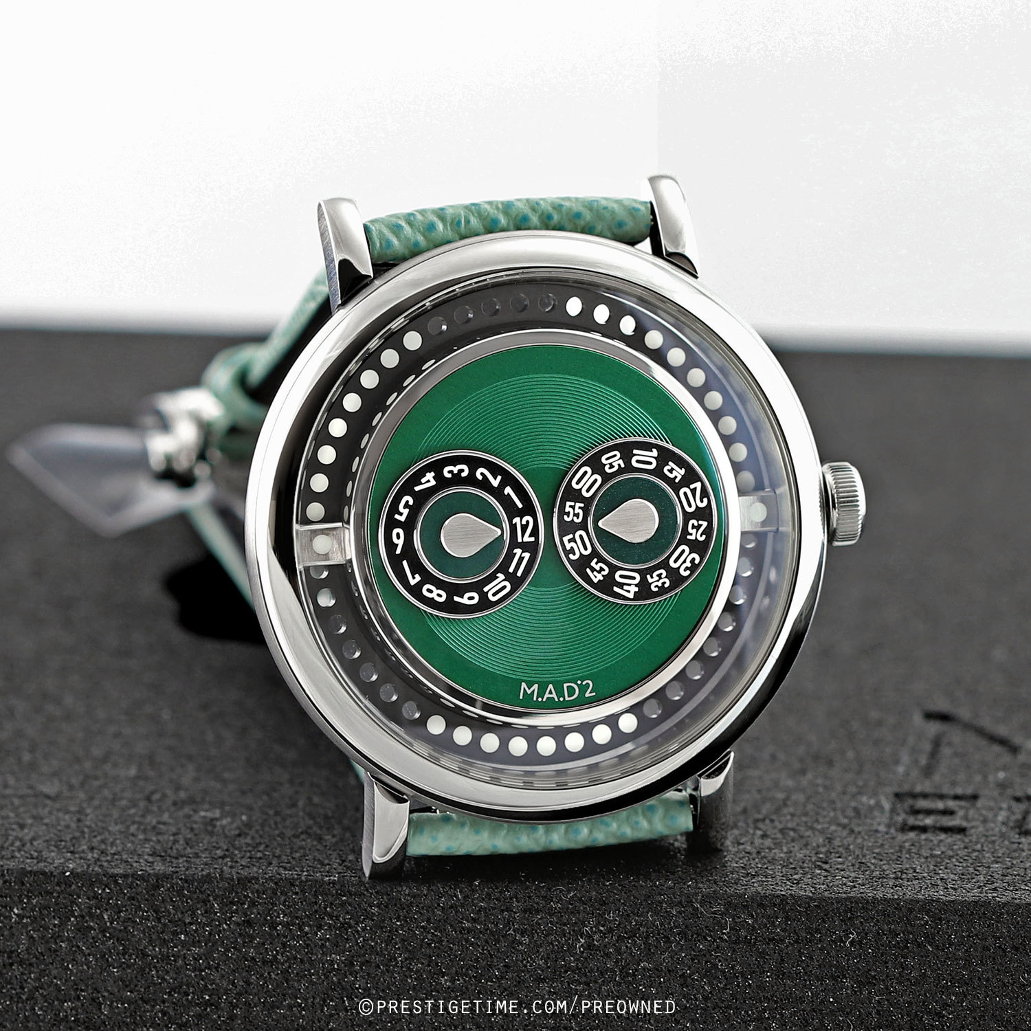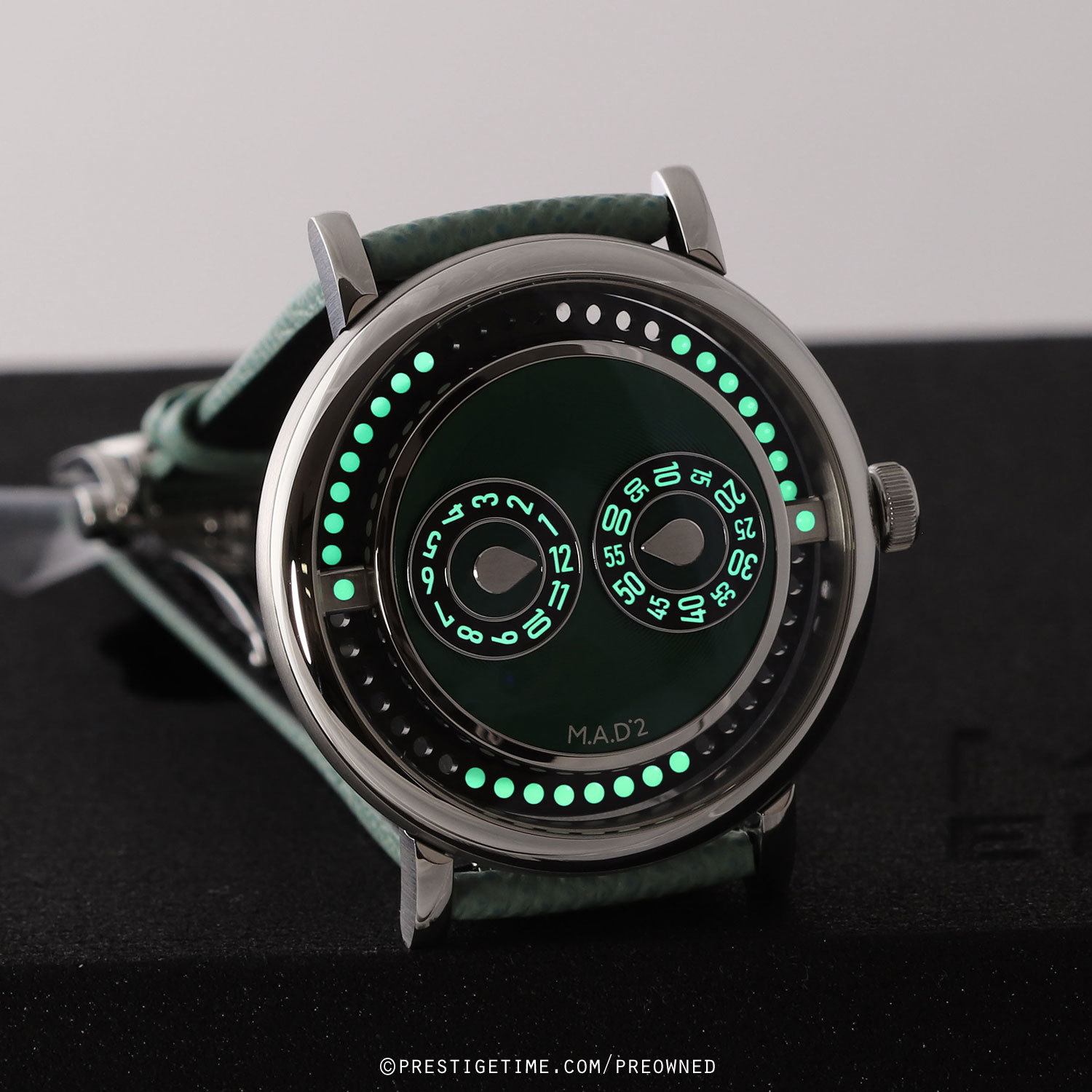 MB&F M.A.D.2 Green Watch – A Tribute to ’90s Lausanne DJ Culture. Designed by Eric Giroud, the M.A.D. 2 Green draws inspiration from the vibrant DJ scene of 1990s Lausanne.