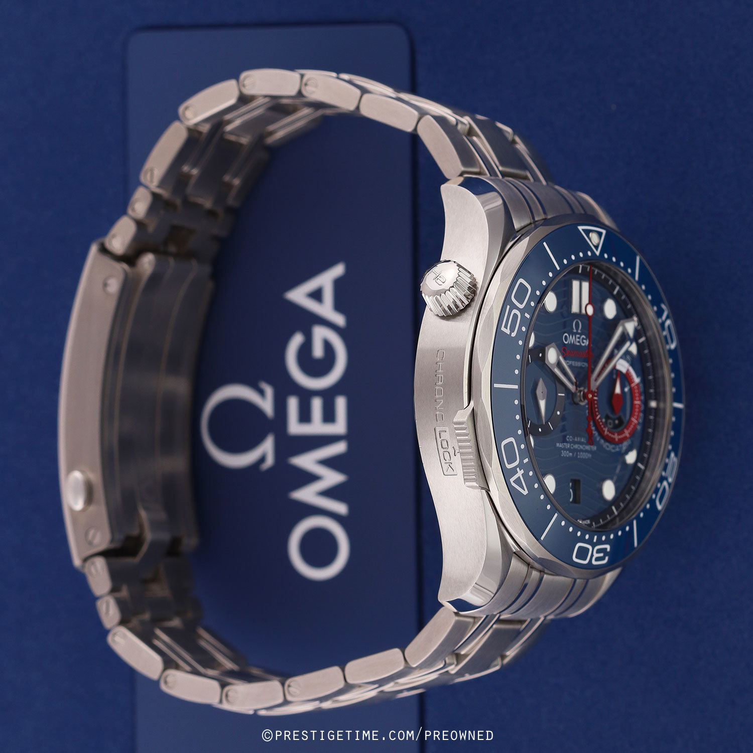 - Delivered with an additional OEM Omega blue rubber strap with a tang buckle. The strap is in unworn condition with its full wear lifespan remaining.