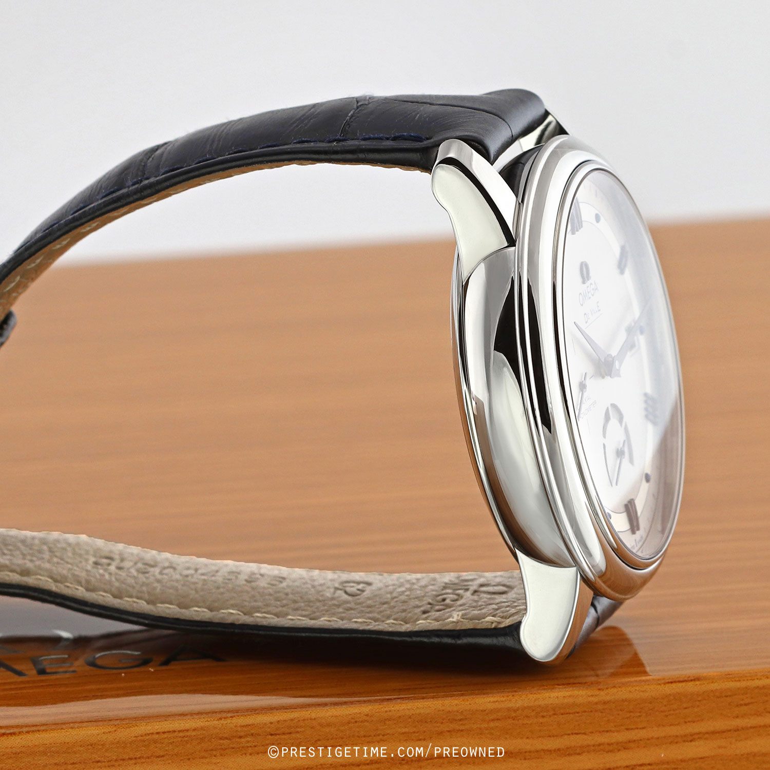 Strap: Fitted on its original Omega blue alligator leather strap with a polished stainless steel tang buckle. The strap is in excellent near new condition with the majority of its wear lifespan remaining. We would grade this strap in 95%+ overall condition.