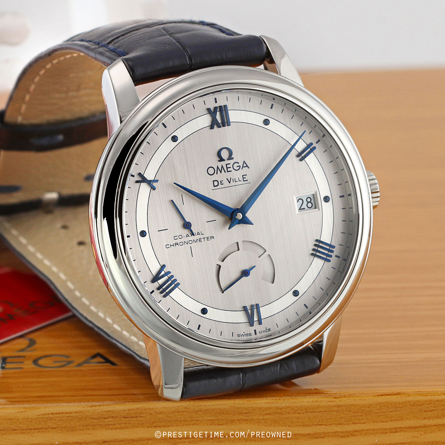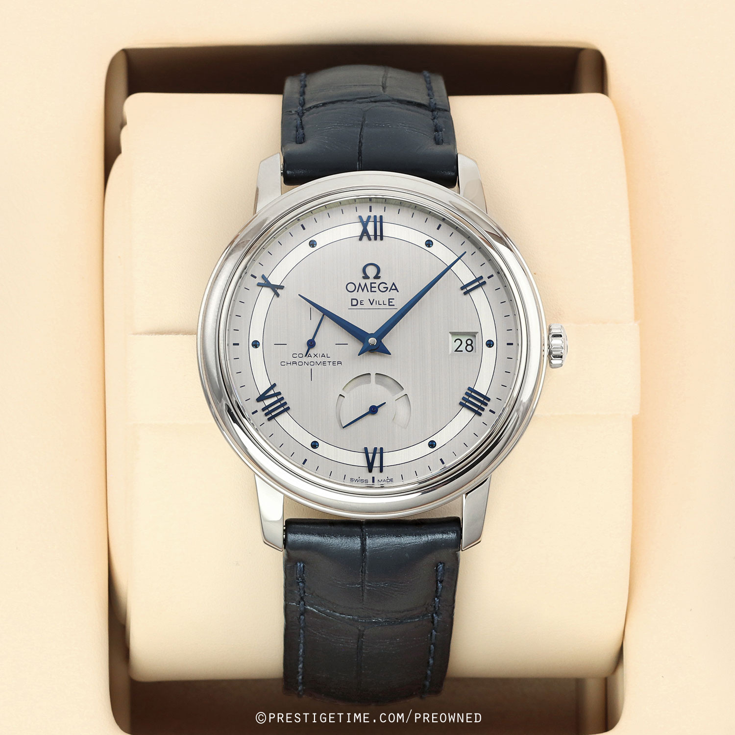 Movement: Powered by an Omega caliber 2627 (base ETA 2892-A2), COSC certified chronometer, beats at 25,200 vph (3.5Hz), contains 29 jewels & has a power reserve of +/- 48 hours. Features Omega's co-axial escapement.