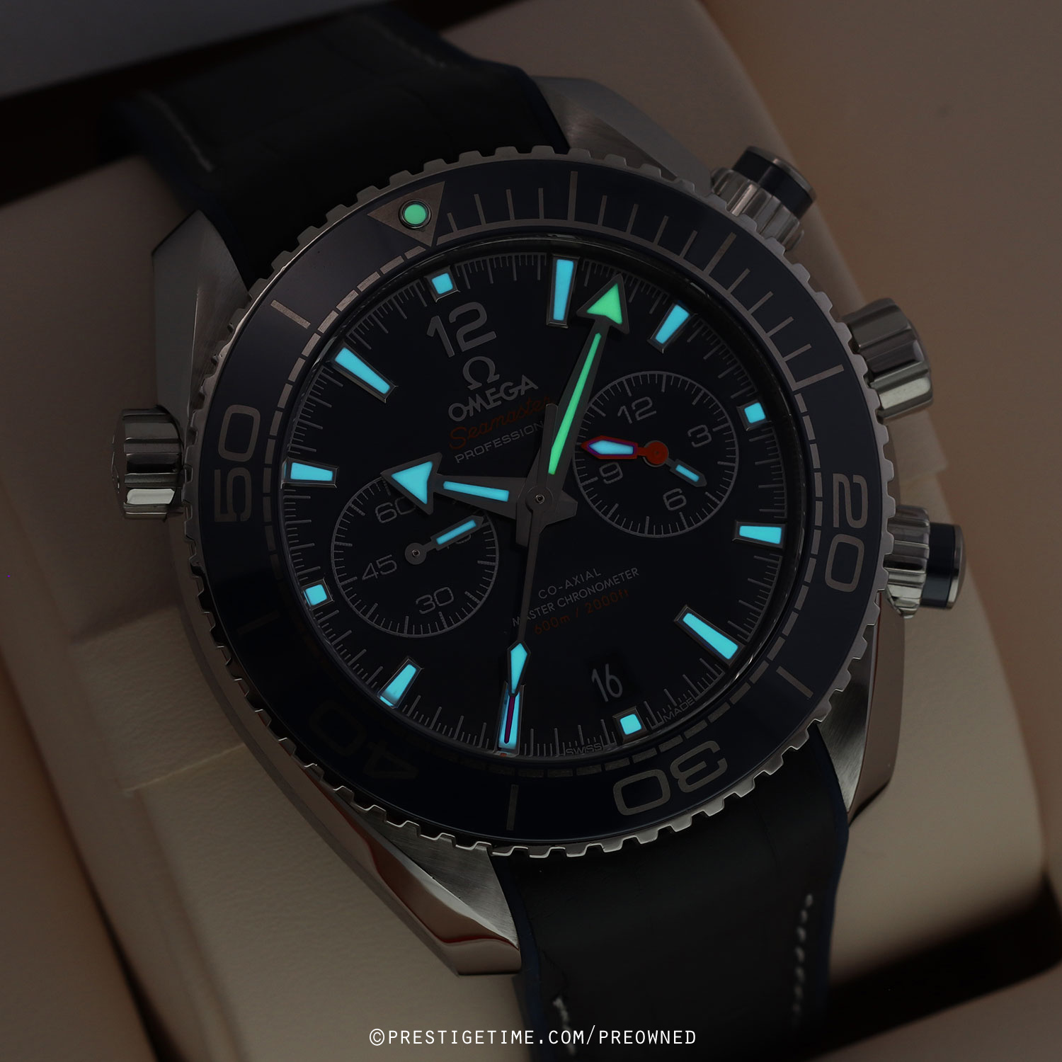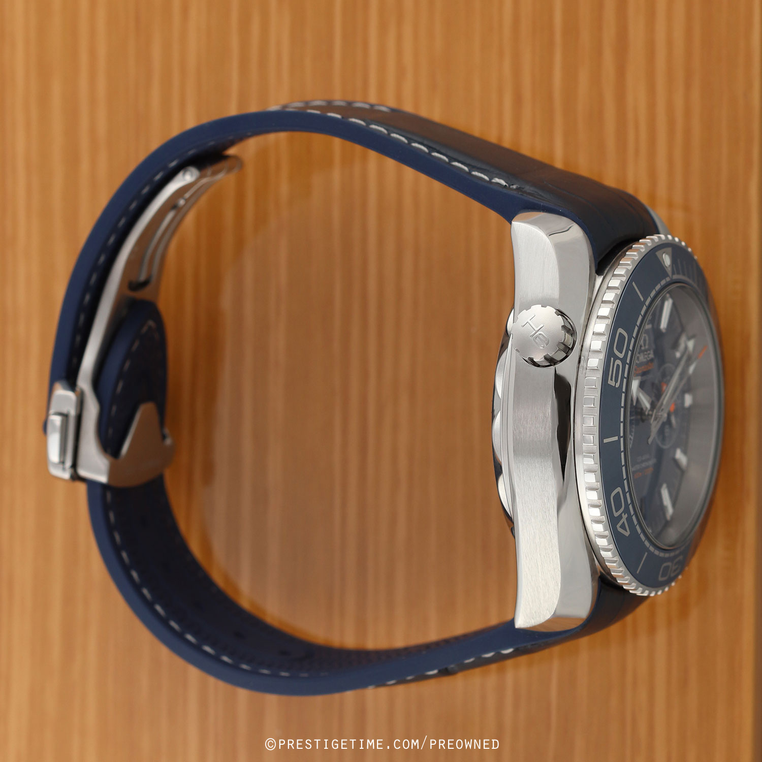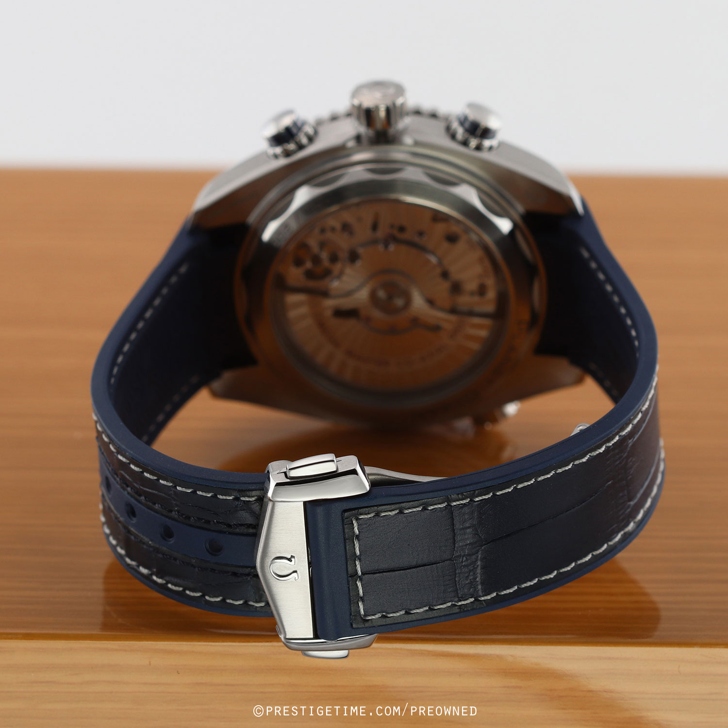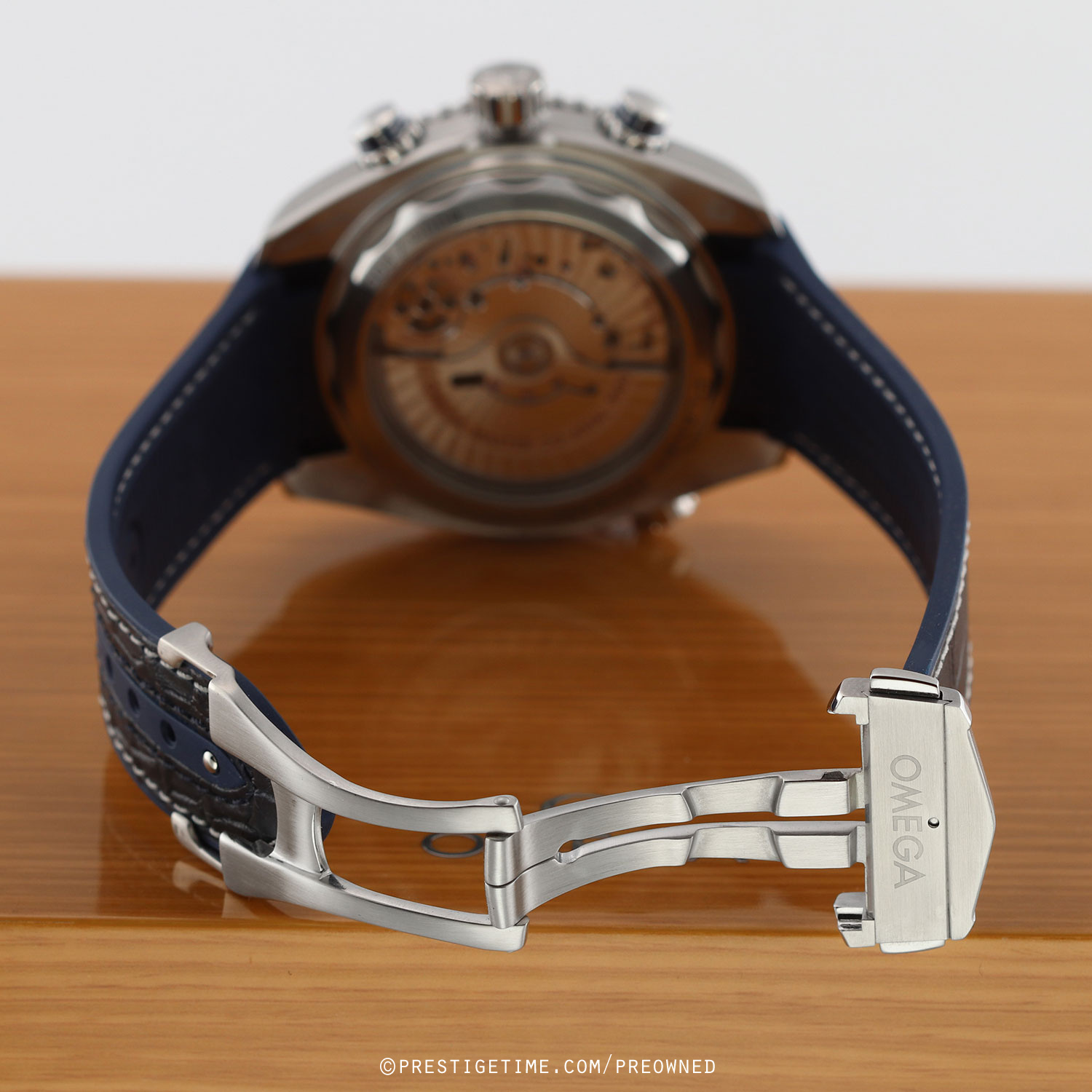 Strap: Fitted on a new Omega Omega blue alligator top & rubber lined strap (white stitching) with a stainless steel push-button deployant clasp. The strap is brand new & unworn with it full wear lifespan remaining.