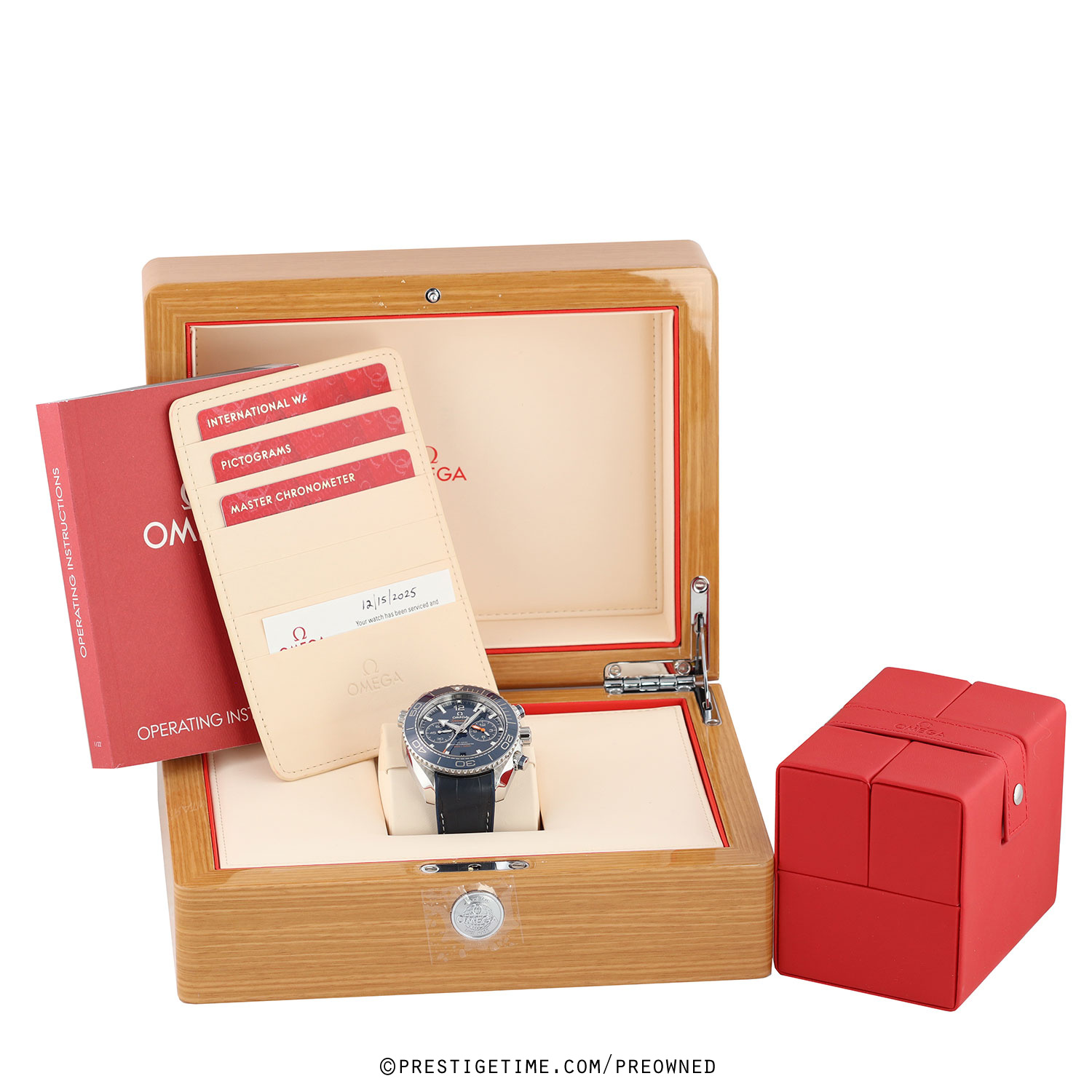 Condition: In excellent near new condition. The watch completed a full factory service in early December 2025 and has not be worn since the service was completed. As part of the service this watch has been polished the watch to remove most signs of wear. We would now be comfortable rating this watch in an 97%+ overall condition. Delivered in its original box with all papers (manual, warranty card, METAS COSC card and pictogram card). A factory service card & a branded Omega service pouch is included.