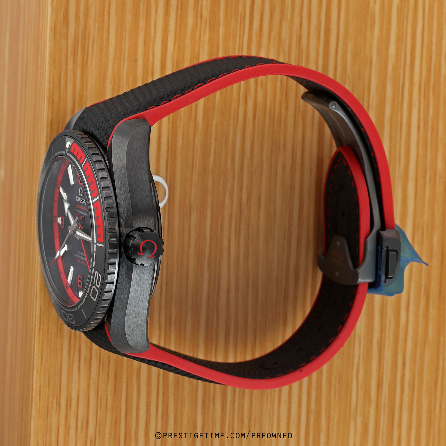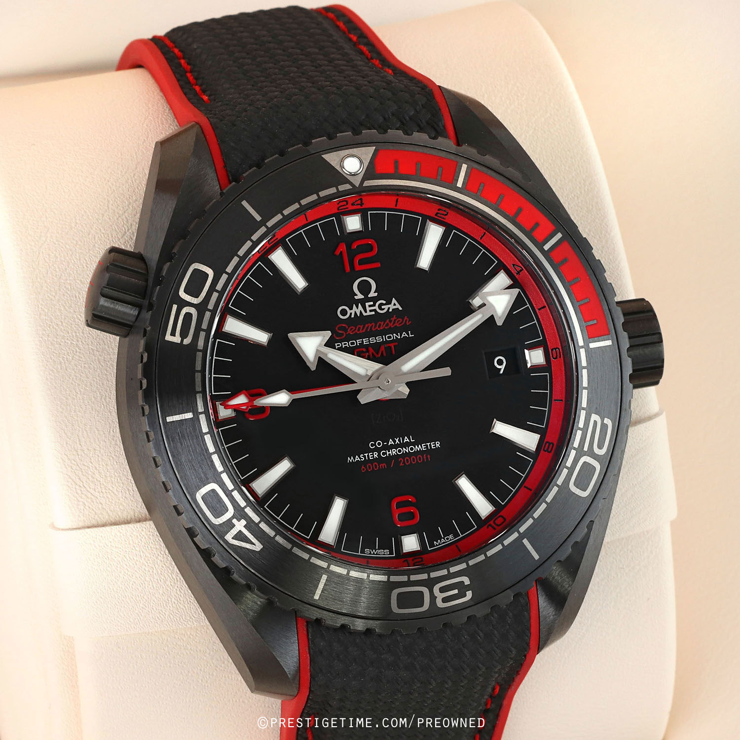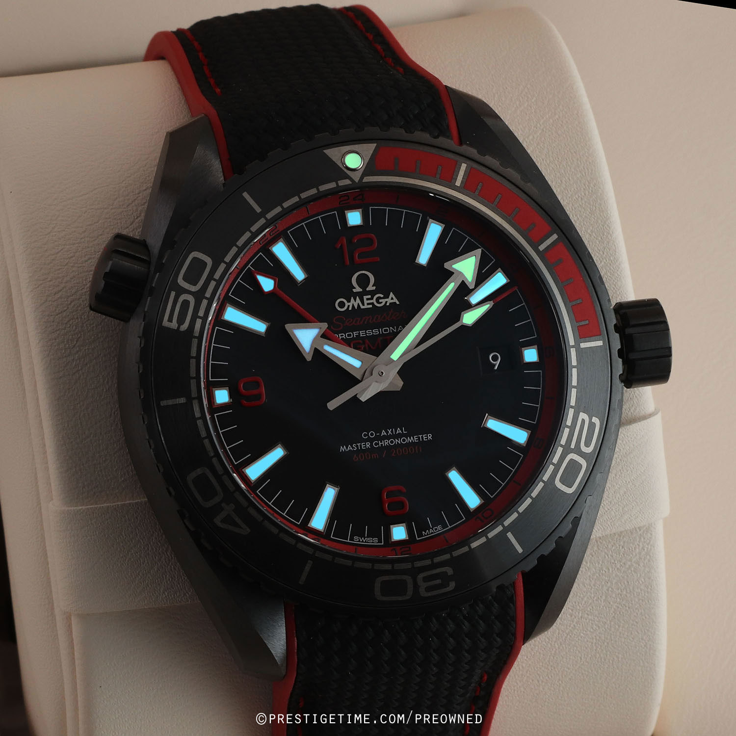 Strap: Fitted on its original black rubber with red stitching & accents and with a black ceramic and titanium push button deployant buckle. The strap is brand new & unworn with its full wear lifespan remaining.