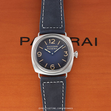 - Fitted on its original Panerai black calfskin leather strap with contrasting off-white stitching & brushed stainless steel tang buckle. The strap is in excellent overall condition with some light scuff marks typical of calfskin. We would be comfortable rating the strap as in 95% in terms of wear life-span & in 92% condition visually.