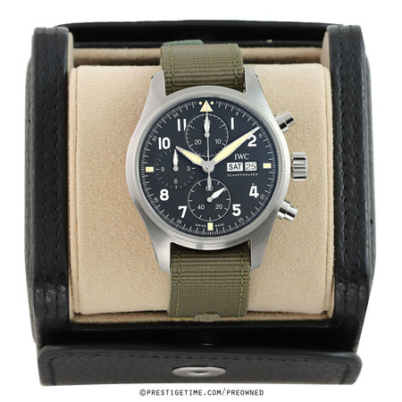 Case: Polished stainless steel case. Brushed stainless steel crown protector. Matte black 'sandwich' dial, with cut-out indications & vintage colored luminous backing. Polished hands with vintage colored luminous filled tips. Cutout hour markers. Small seconds sub-dial at 9 o'clock. Date window at 3 o'clock.
