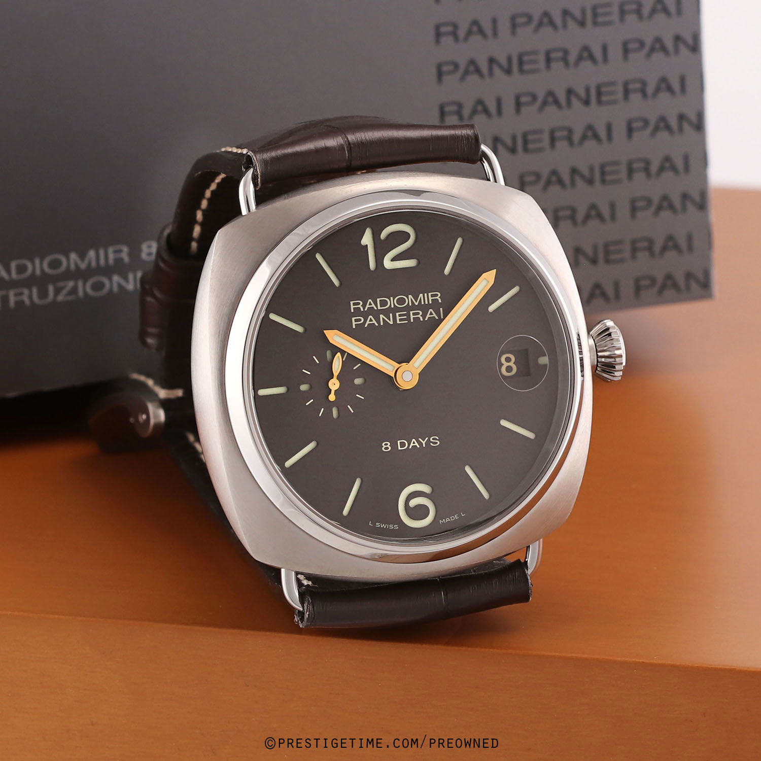 Movement: Powered by a Panerai in-house hand-wound caliber P.2002/9, beats at 28,800 vph (4Hz), contains 23 jewels & has an impressive power reserve of 8 days.
