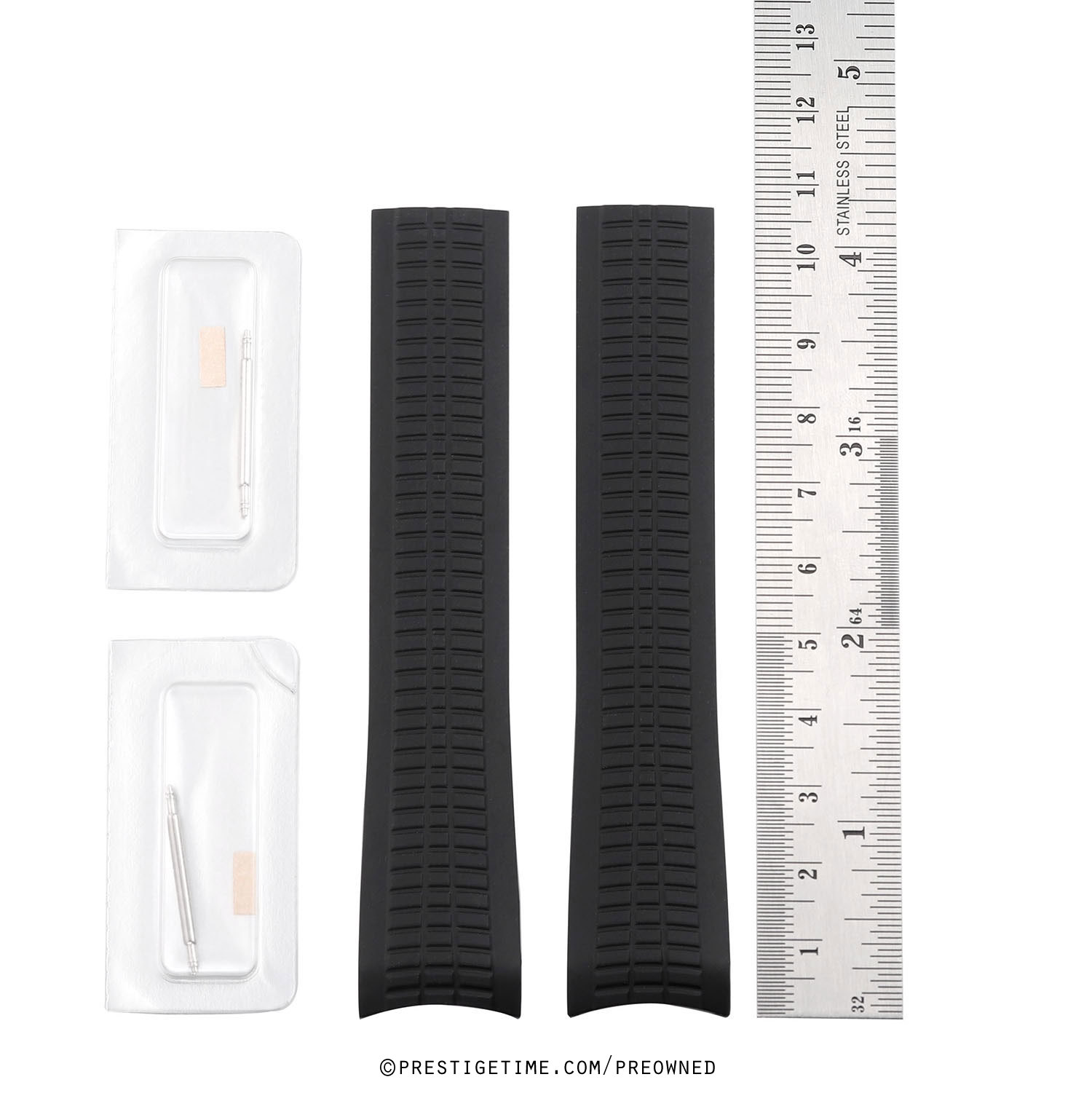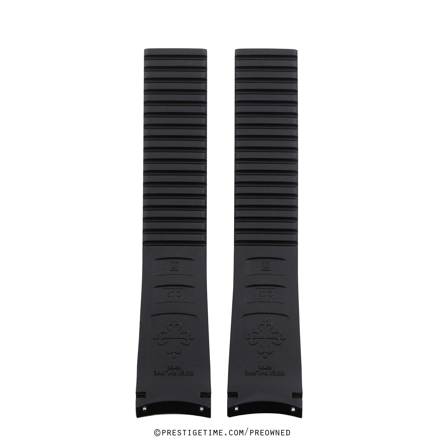 Genuine Patek Philippe black rubber strap with integrated curved edges for Aquanaut models.