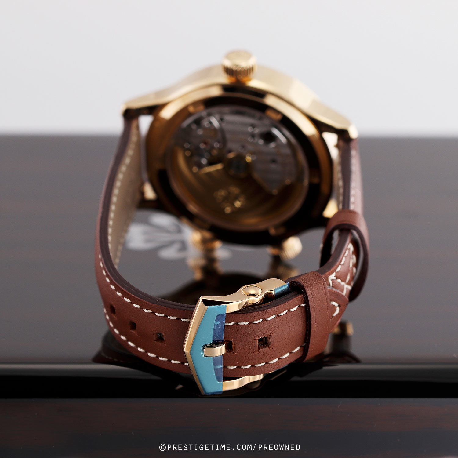 Case: Polished 18kt rose gold case. Graduated chocolate brown to black dial with a very fine sunray finish. Polished rose gold hour & minute hands with luminous fill. White central seconds & GMT hands. Applied polished rose gold numeral hour markers with luminous fill. Fine printed minutes/seconds track. Date sub-dial at 6 o'clock.