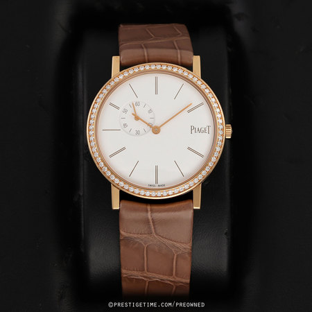 Movement: Powered by a Piaget in house quartz (battery) caliber 56p. Time correction via a recessed button case back.