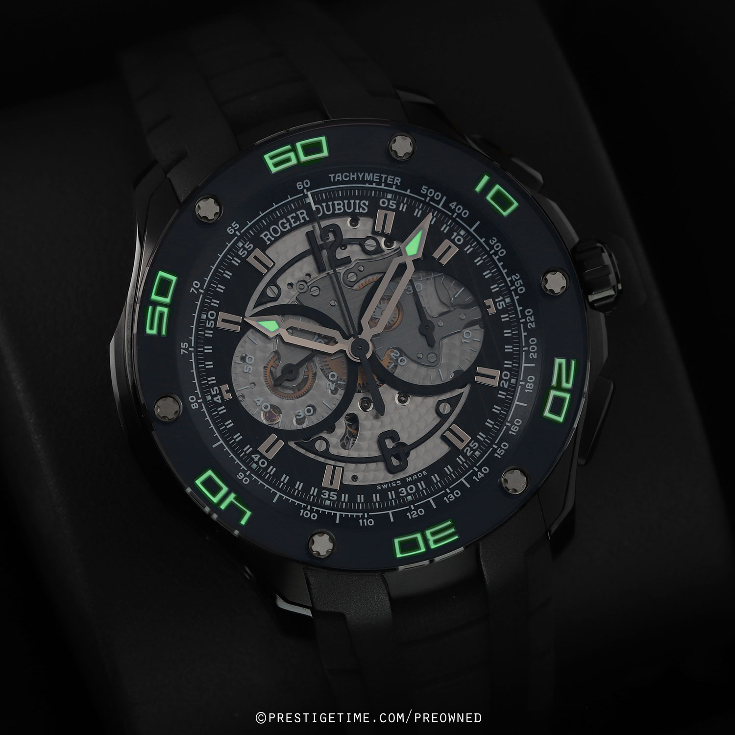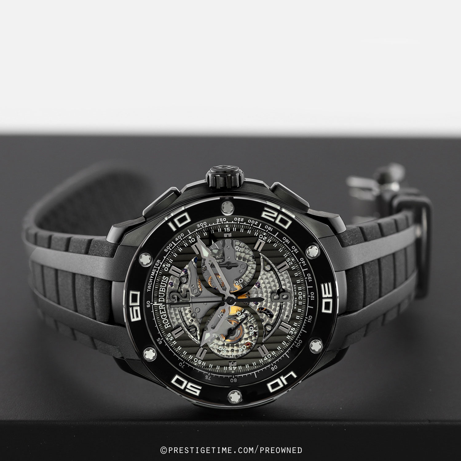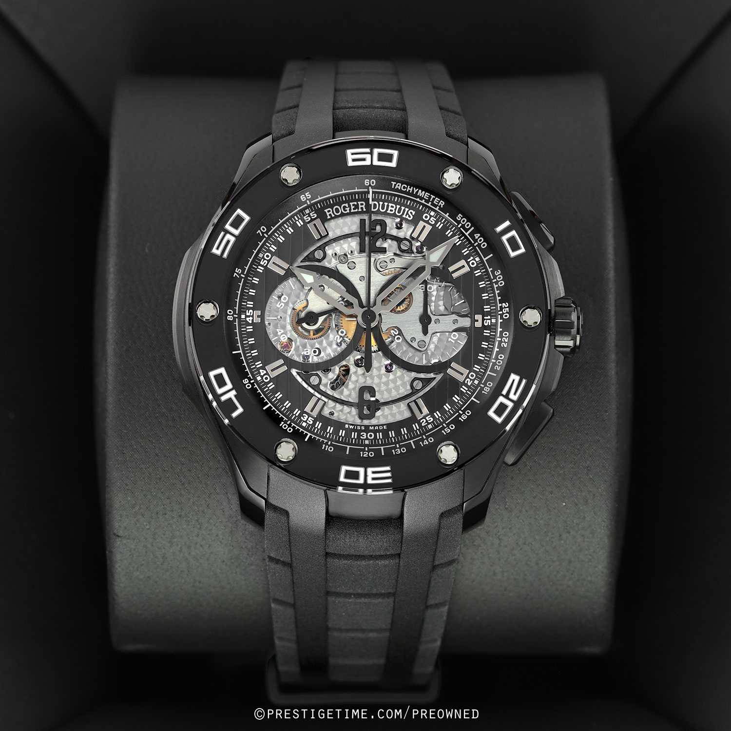 Strap: Fitted on its original Roger Dubuis black structure rubber strap with a push-button deployant buckle. The strap is brand new & unworn with its full wear lifespan remaining.